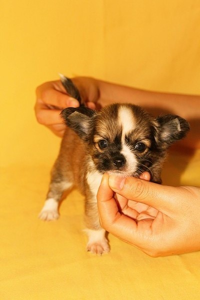 น้องชิวาวาขนยาว ไซต์เล็ก ประวัติการดูแลสุขภาพ ถ่ายพยาธิแล้ว 1 ครั้ง และ วัคซีนแล้ว 1 เข็ม ค่ะ เกิดวันที่ 24 มิถุนายน 56 อายุ 46 วัน (ภาพถ่ายปัจจุบันของน้องเลยค่ะ) ลักษณะของน้องค่ะ สี(ขาว + น้ำตาล) ตรงที่เป็นสีดำเวลาผลัดขนจะถอดสีดำออกเป็นสีน้ำตาลแน่นอนค่ะ จะไม่ดำตลอดค่ะ เพศ (เมีย 1 ตัว) หัวกลมโต หน้าสั้นค่ะ ขนแน่น ตัวจริงน่ารัก ขี้เล่น ทานอาหารเก่งค่ะ(ทานอาหารเม็ดแช่น้ำค่ะ จะมีตัวอย่างไปให้ก่อนค่ะหมดห่วงได้ค่ะ) เลี้ยงง่าย สุขภาพร่างกายแข็งแรง พ่อแม่เป็นขนยาวทั้งคู่ สุนัขเป็นสุนัขบ้านค่ะ สนใจสามารถเข้ามาชมน้องได้ค่ะไม่ซื้อไม่ว่ากันค่ะ สอบถามข้อมูลน้องเพิ่มเติมได้ค่ะ มีบริการส่งจ้า