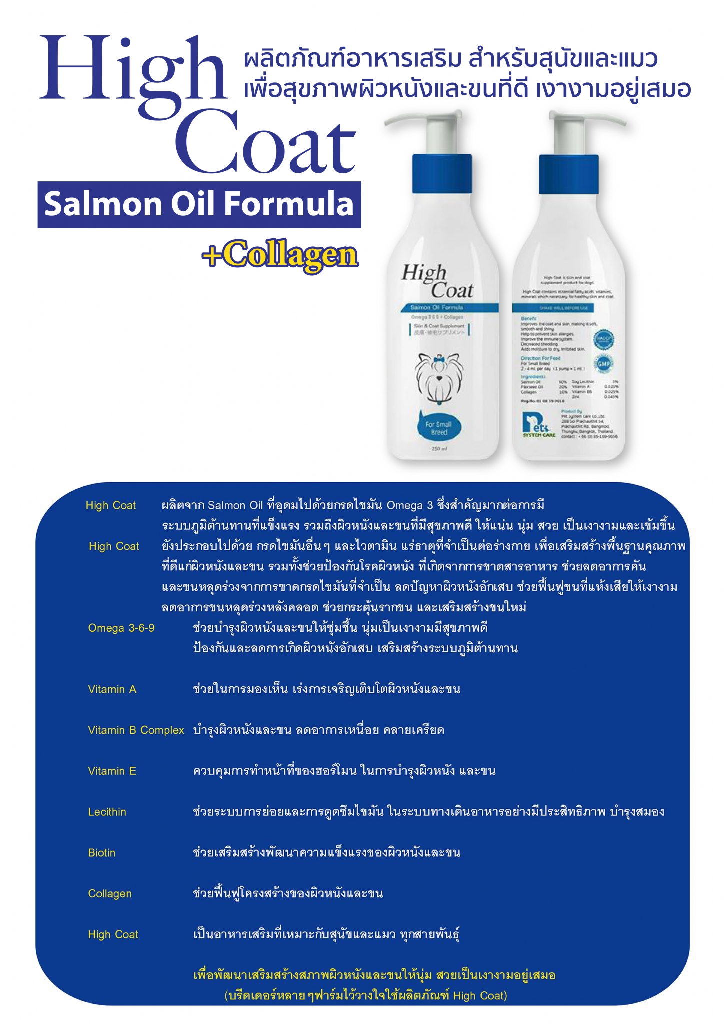 High coat ผลิตภัณฑ์บำรุงขน ให้หมาๆขนแน่น และผิวหนัง สุขภาพดี๊ดี ใช้ได้ทั้ง สุนัขพันธุ์เล็ก และสุนัขพันธุ์ใหญ่ ใช้แล้วเห็นผมจริง สนใจสอบถาม ราคา หรือสั่งซื้อ ได้ที่นี่ สินค้าพร้อมส่ง