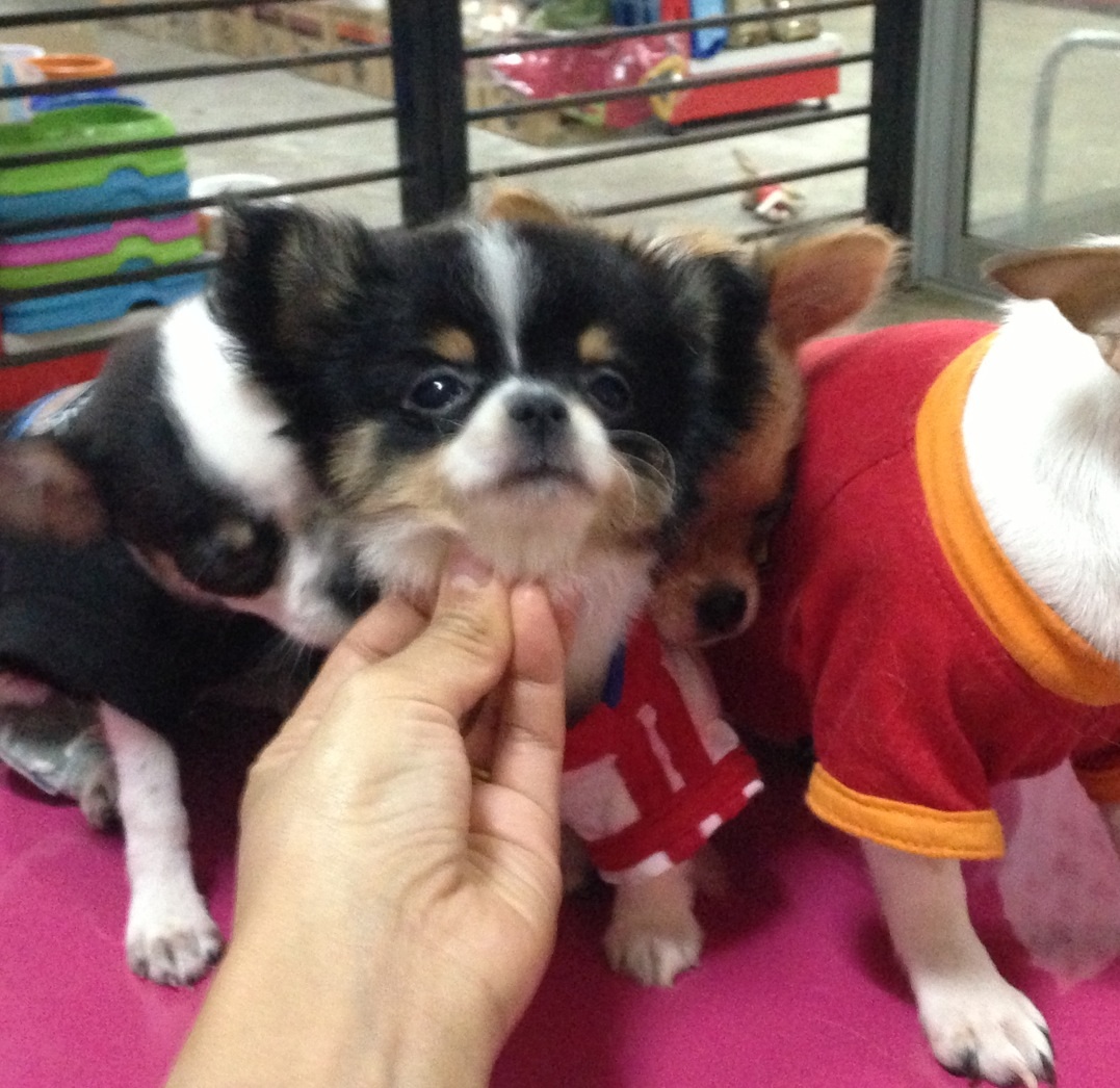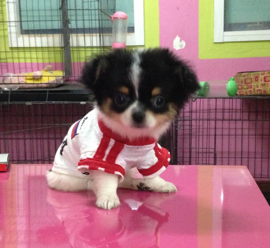 ชิวาวาขนยาวสีขาวดำเพศผู้ ราคา 11,900 บาท