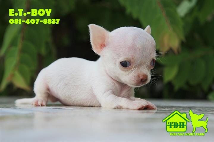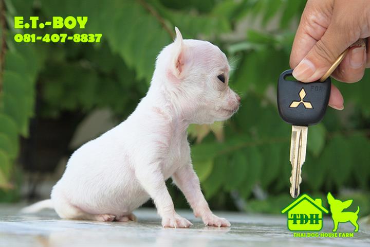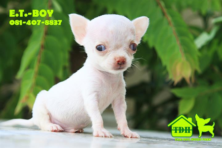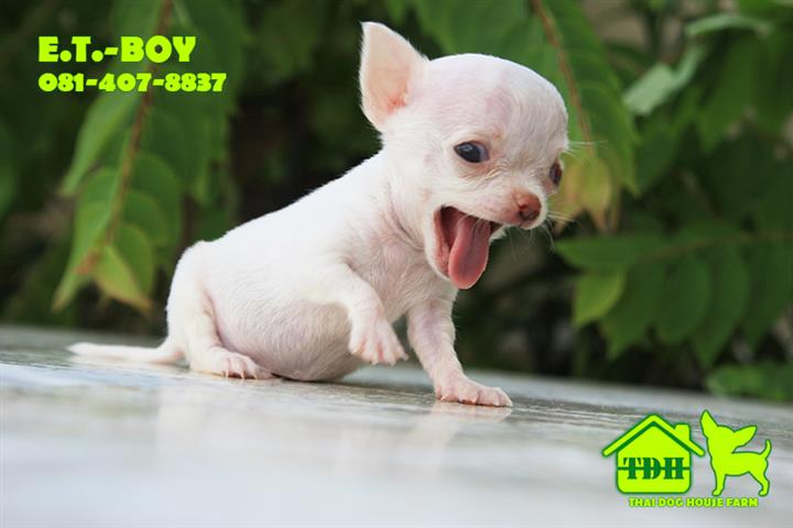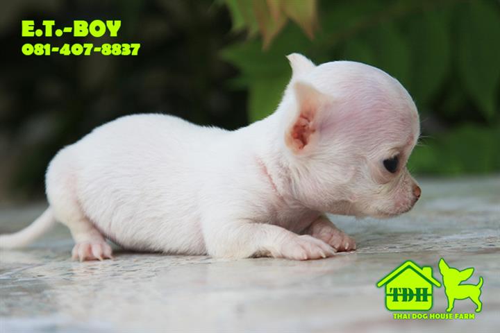 ชิวาวาหนุ่มน้อยขนสั้นสีขาวล้วน