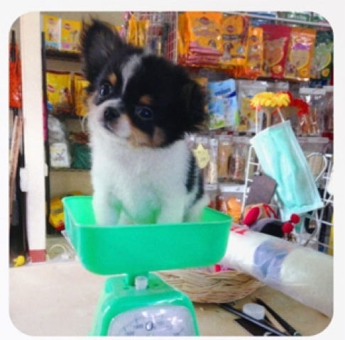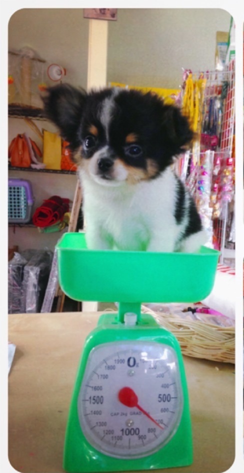 ชิวาวาขน 2 ชั้น ดญ. อลิช สีขาว - ดำ น้ำหนัก 1 กก. ไซท์เล็ก