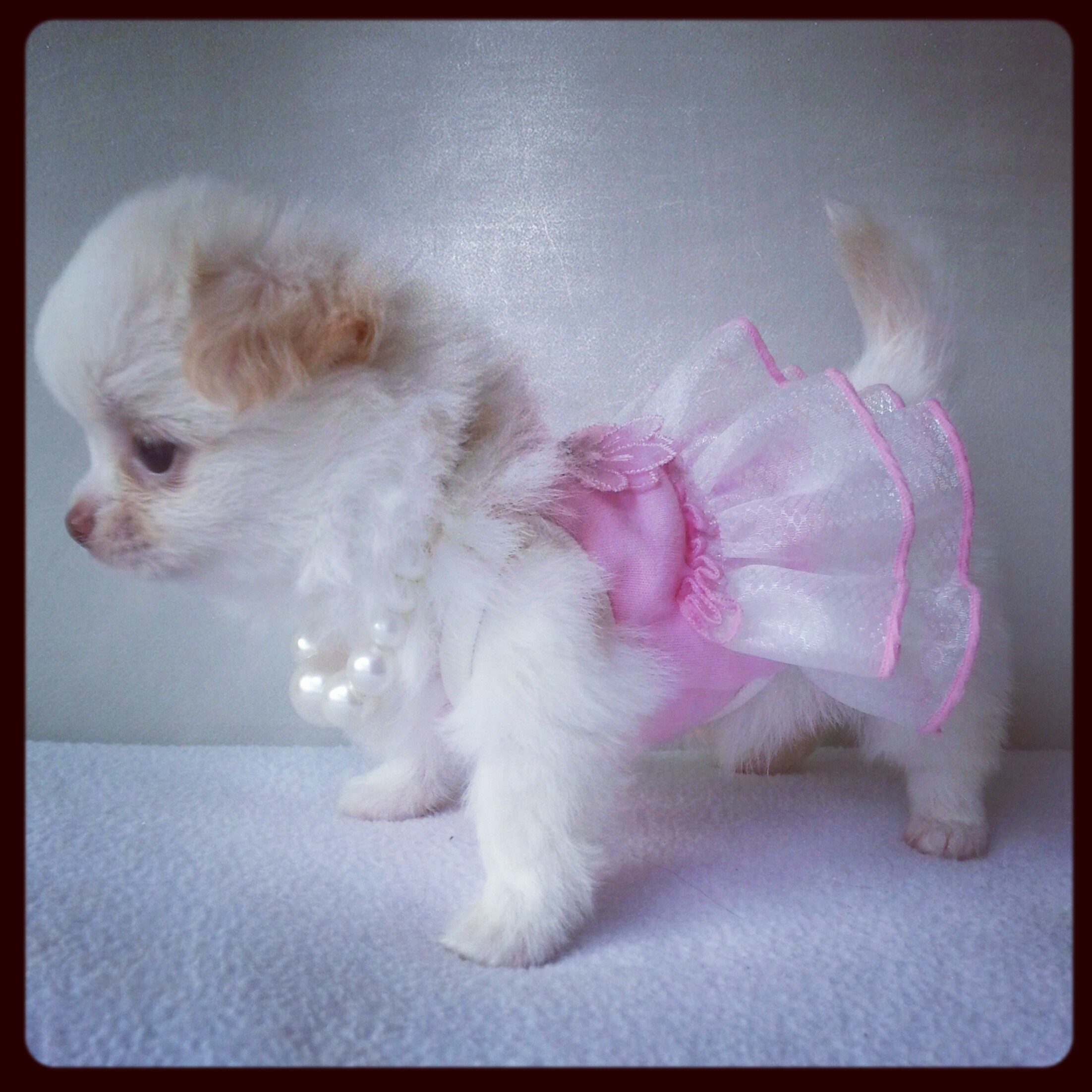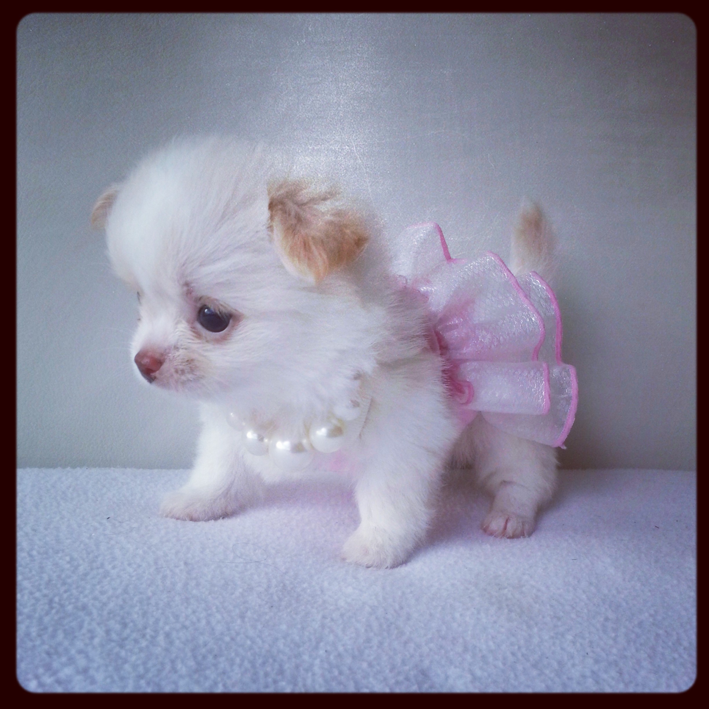 ชิวาวาเพศผุ้ ขนยาว สีขาว ขนแน่นมากค่ะ