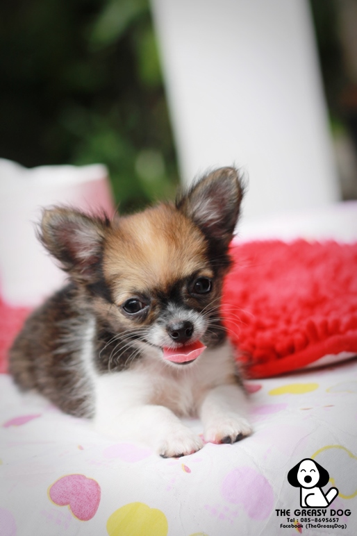 ขายชิวาวาขนยาว T-CUP สามสี เพศเมีย หัวโต หัวโตแอ๊ปเปิ้ล ตัวเล็กมากๆ