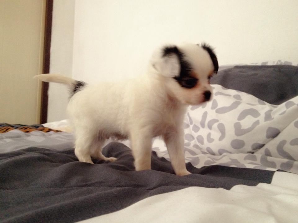 ชิวาวาขาวยาว(น้องแพนด้า)สายญี่ปุ่น สีแฟนซี มาร์กหมีแพนด้า มีคิ้ว เพศผู้ ไซด์เล็กจิ๋ว ขนแน่น เกิด10/7/56 แข็งแรง ขี้เล่น ขี้อ้อน ฉลาดฝุดๆ ติดคน ทานเก่ง ถ่ายพยาธิ+วัคซีนรวม1เข็มแล้ว ฝึกขับถ่ายเป็นที่แล้วคะ