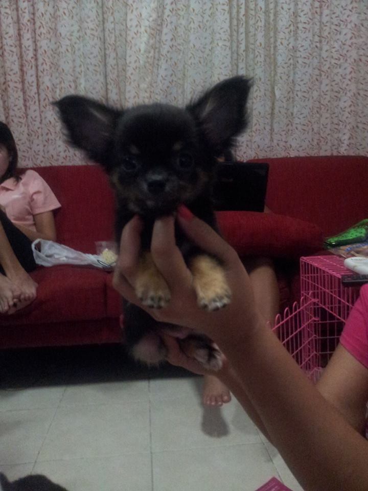 ชิวาวาขนยาว หน้าตุ๊กตา หัวโต ตาหวาน สีแบล็คแทน เพศเมีย อายุ3เดือน วัคซีน2เข็ม ร่าเริง