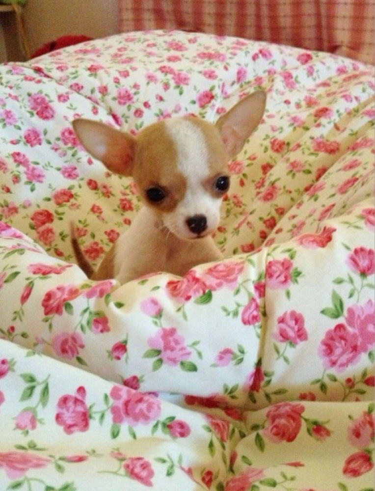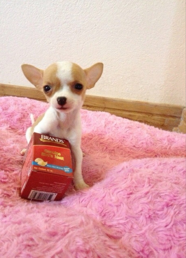ขายชิวาวา ขนสั้น สีแฟนซี ขาว-น้ำตาล เพศเมีย ไซค์เล็กค่ะ