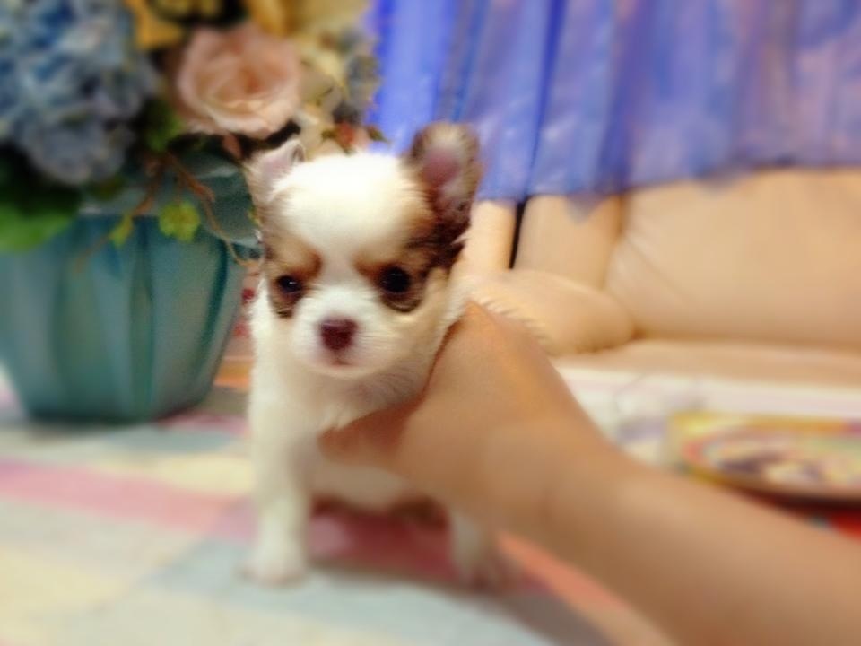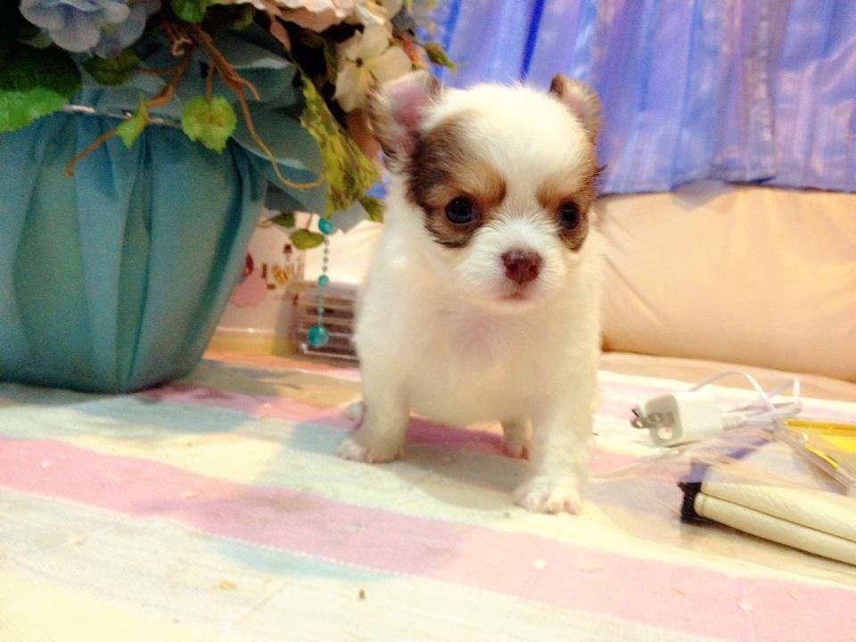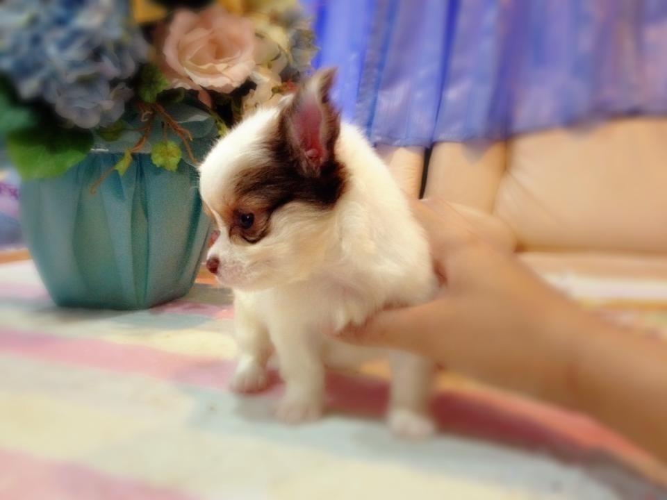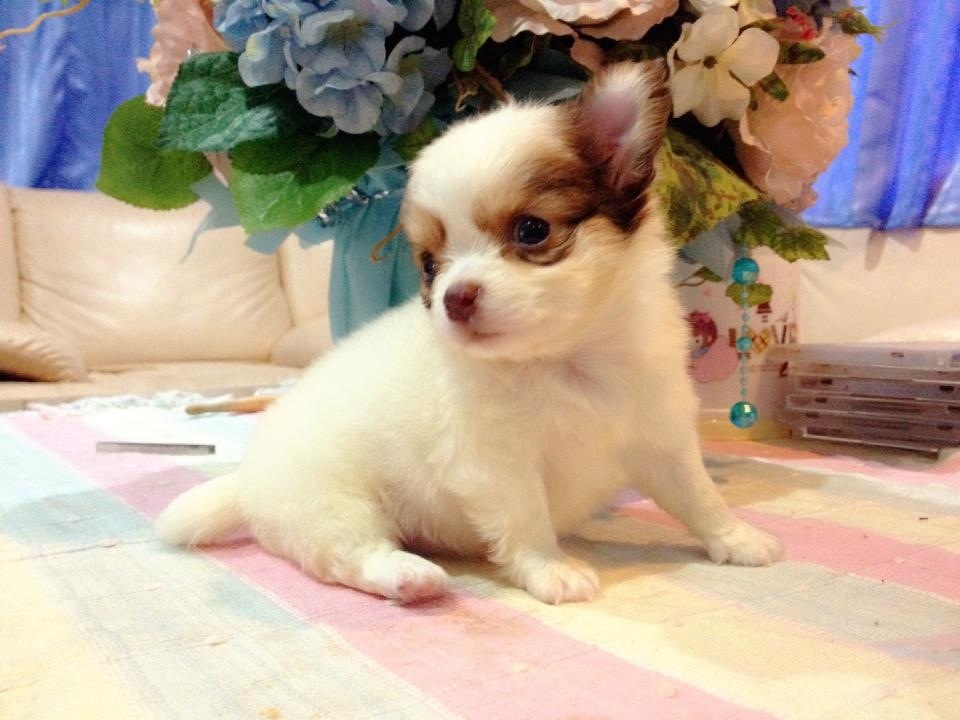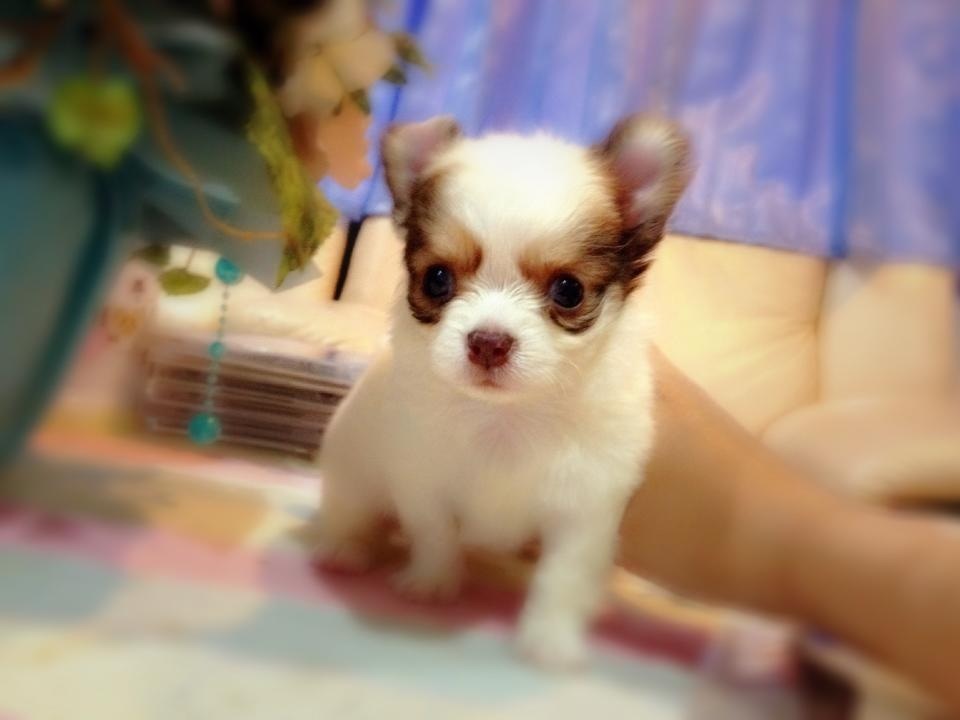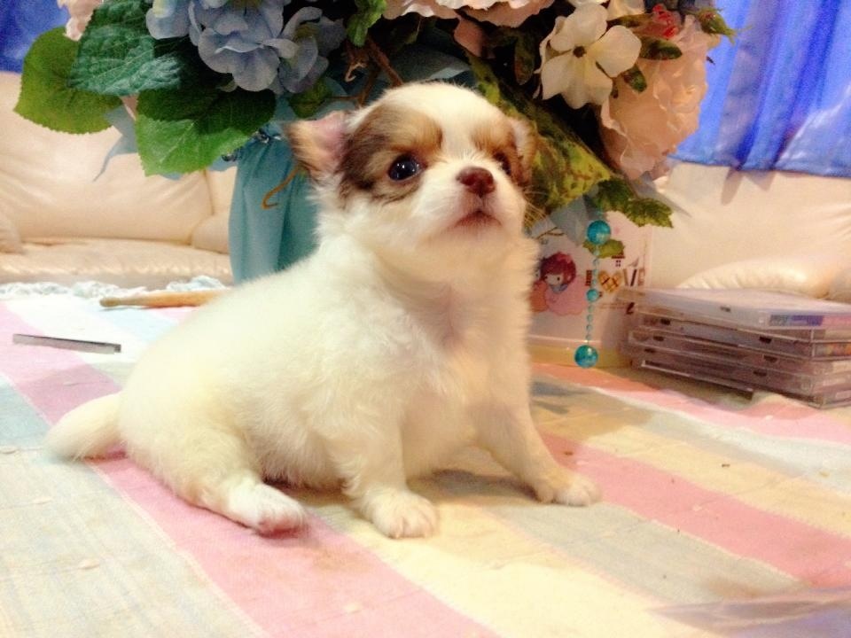 ชิวาวาขนยาว(น้องนัทตี้)สายญี่ปุ่น สีขาว-ช๊อก จมูกสีช๊อก มีคิ้ว ใส่หน้ากาก มี20นิ้ว ไซด์ทีคัพ ลูกโทน ขนแน่นเว่อร์ๆ ตัวสั้นกระปุ๊กลุก ทรงสวยเทพๆ หน้าสั้น หัวกลมใหญ่เป็นแอปเปิ้ล เพศเมีย เกิด 27 มิ.ย. 56 ขาสั้น แข็งแรง น่ารัก ติดคน ขี้เล่น ฉลาดฝุดๆ ทานเก่ง ถ่ายพยาธิ+วัคซีน1เข็ม ฝึกขับถ่ายเป็นที่แล้วคะ
