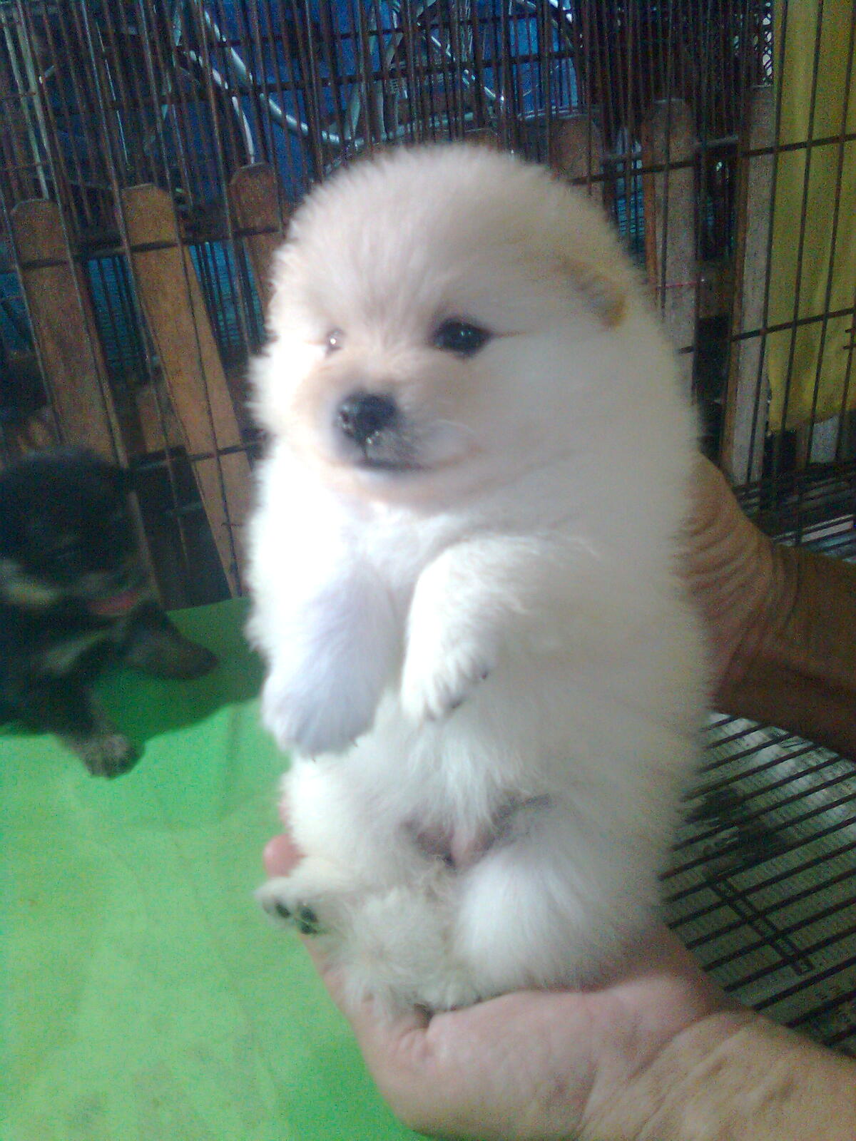 ขายปอมบ้านๆ แท้ 3ตัว ตัวผู้ สีขาวครีม เมีย2 สีดำ-ขาวครีม
