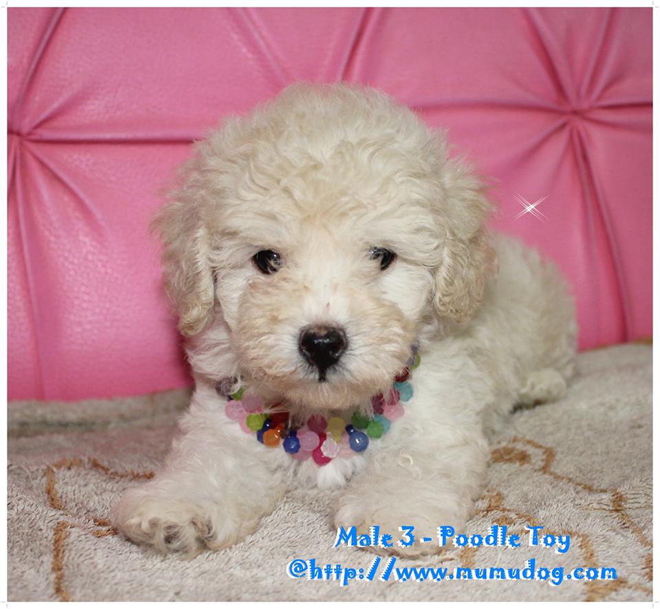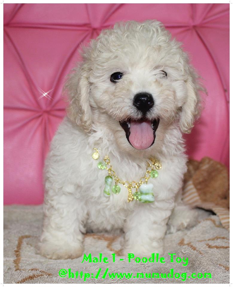 พุดเดิ้ล ทอย สีฟางข้าว-ขาว ขาสั้น ตัวสั้นๆ อ้วนๆ กลมๆ ตาดำ จมูกดำ ขนหยิก ขนแน่นๆ