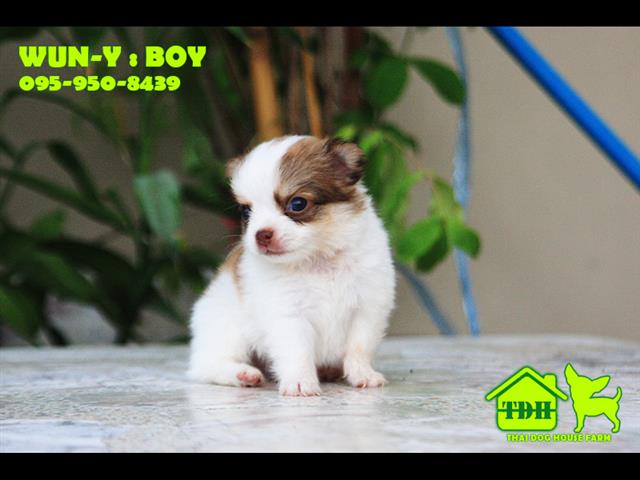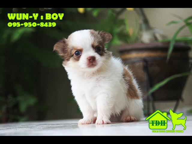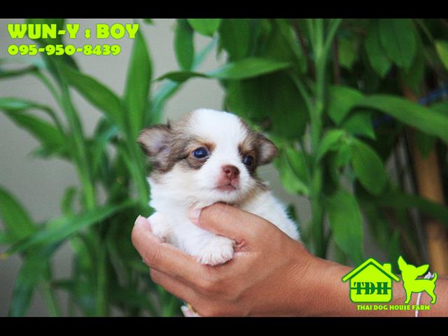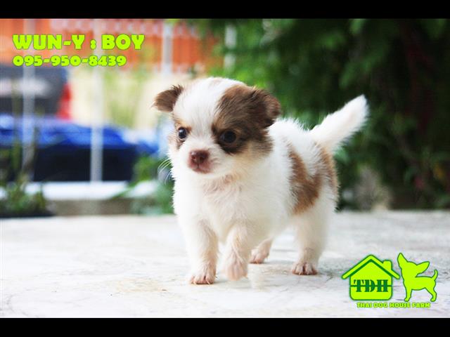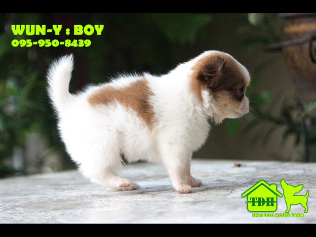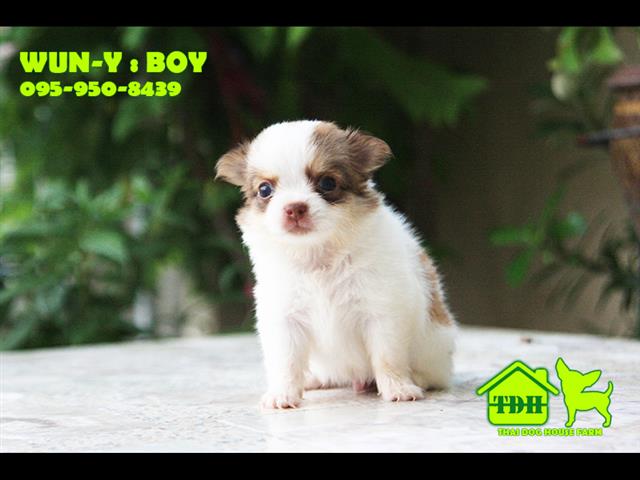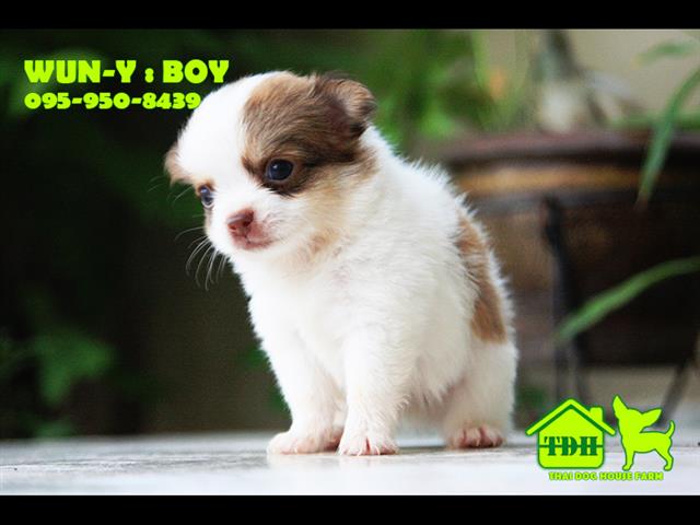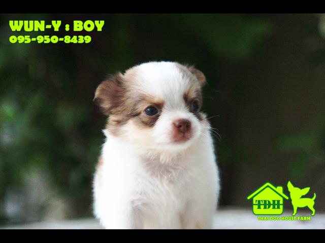 ชิวาวาหนุ่มขนยาว สีขาว-น้ำตาล