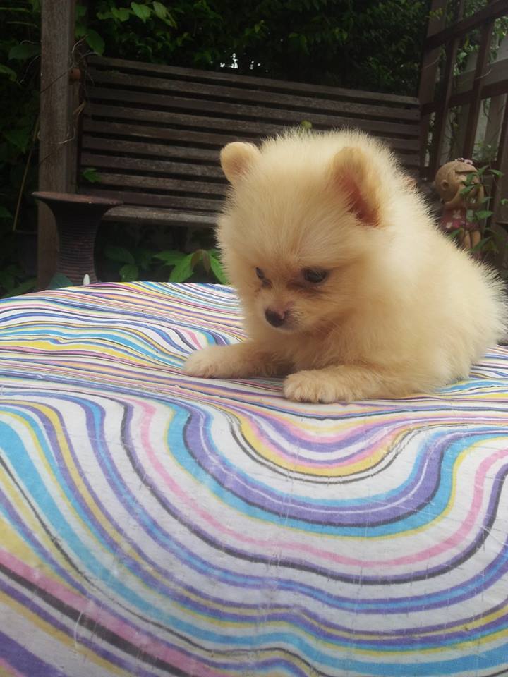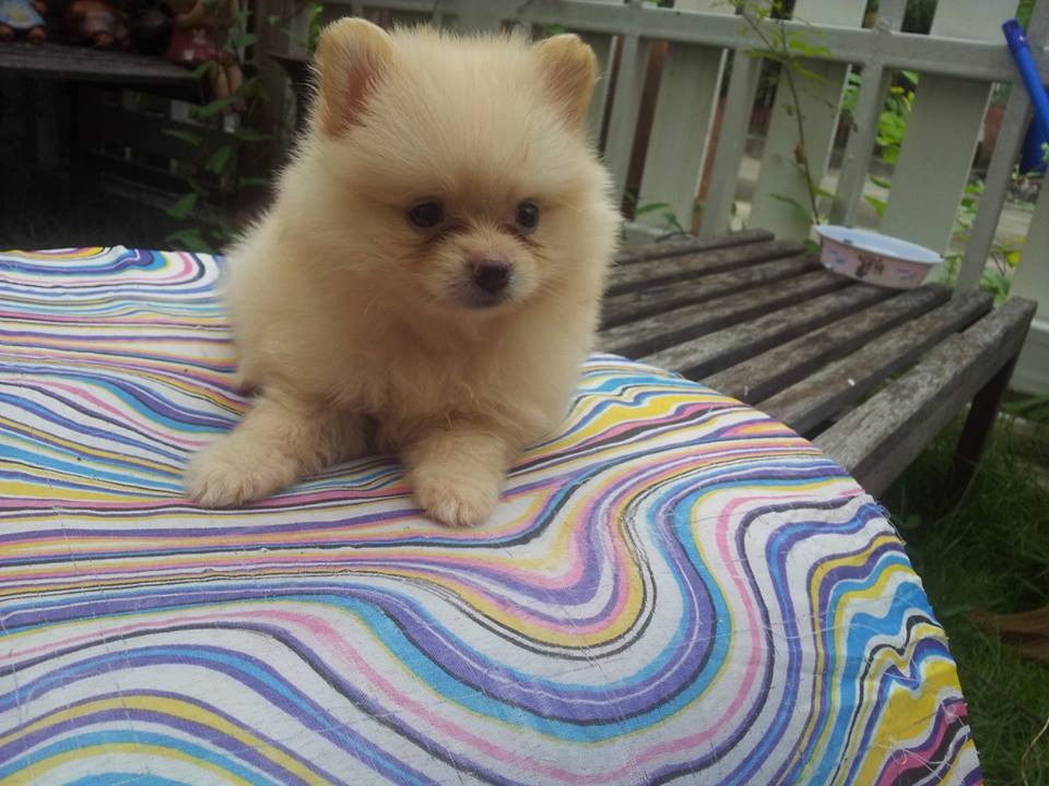 ปอมหน้าหมี ไซด์เล็ก สีครีม หน้าหวาน เพศเมีย อายุ2เดือนครึ่ง วัคซีน+ถ่ายพยาธิแล้ว ร่าเริง