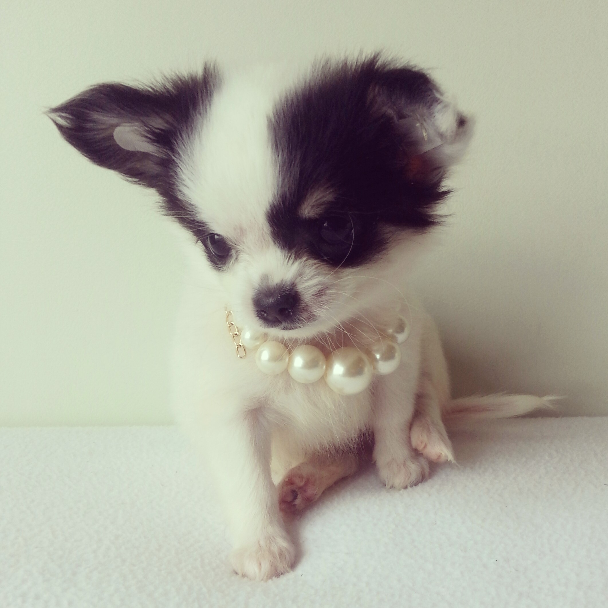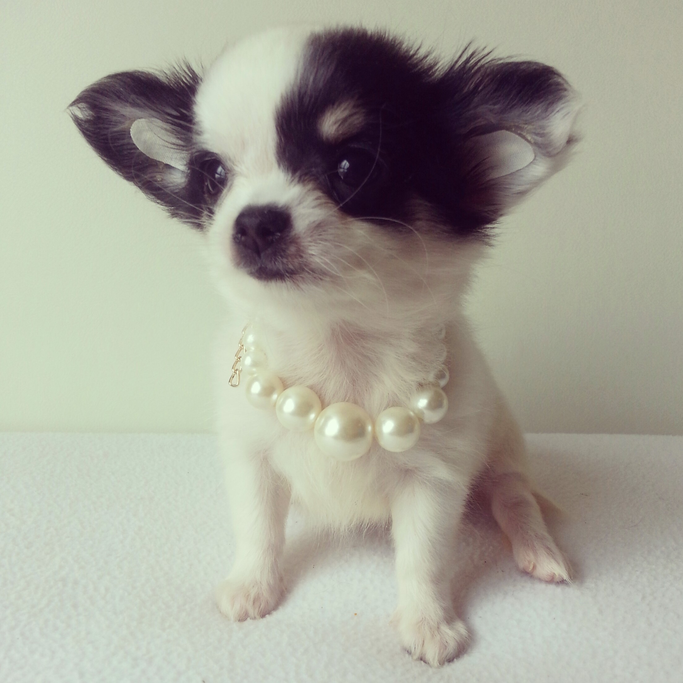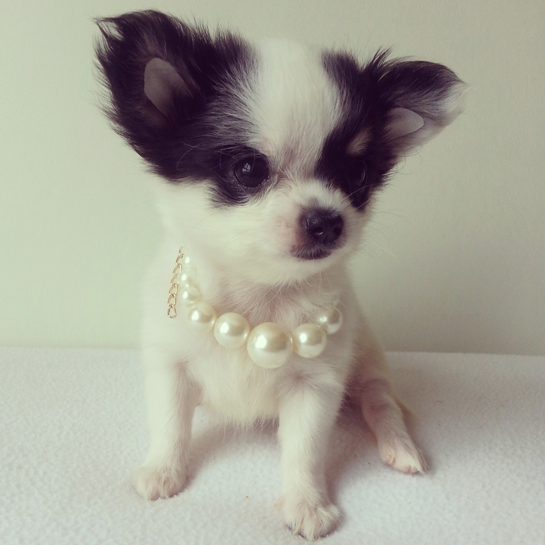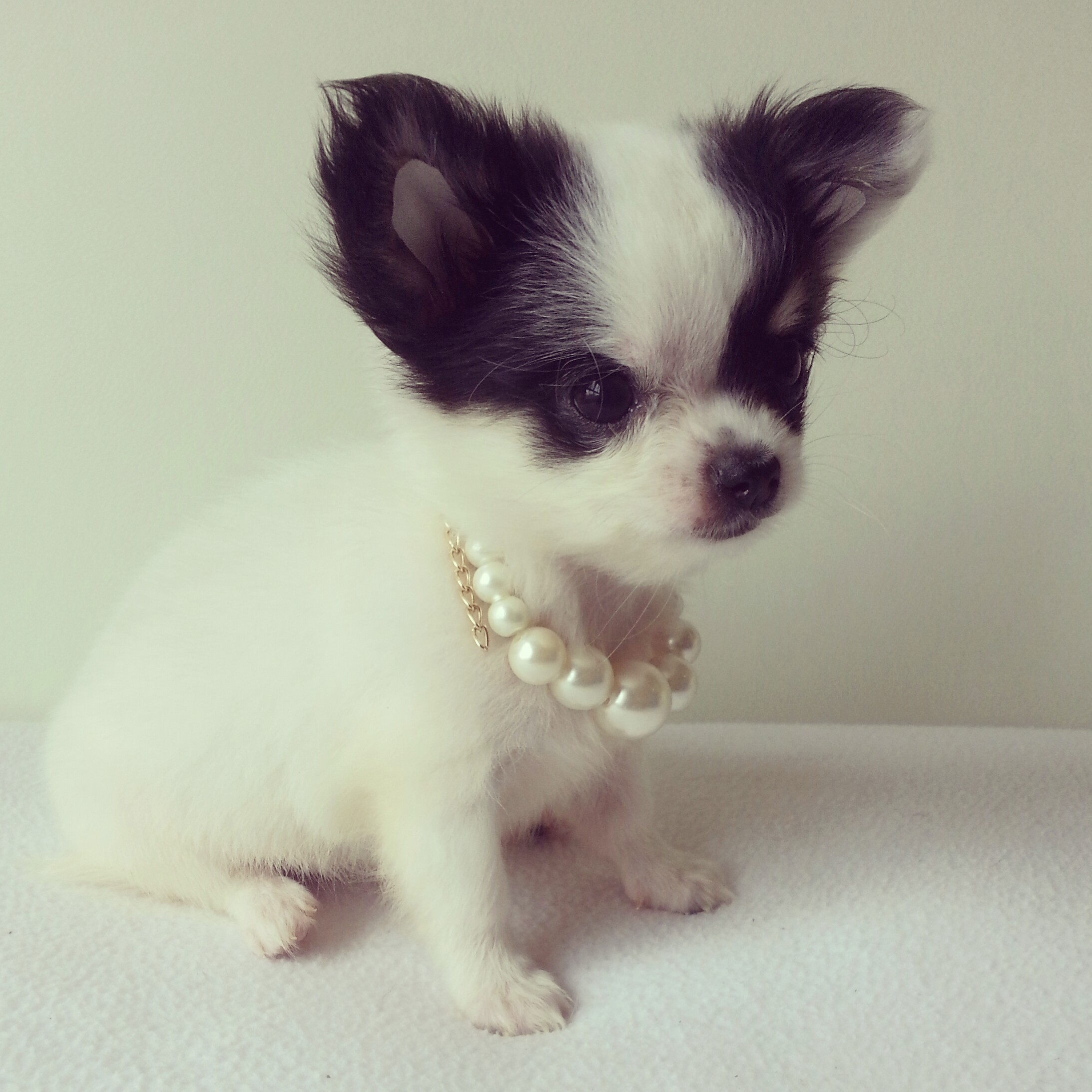 TOP GRADE!!!!! ชิวาวาเพศเมีย ขนยาวไซด์เล็ก สีแฟนซีขาว-ดำ