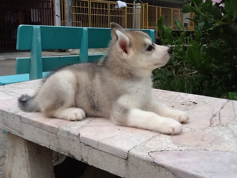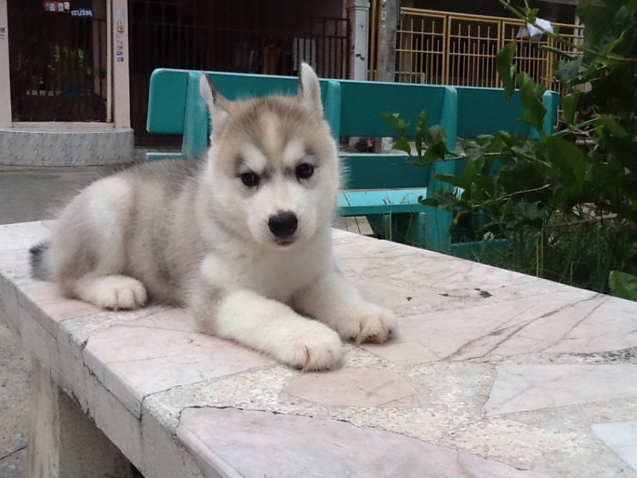 ขายลูกไซบีเรียนฮัสกี้ เพศเมีย สีขาวเทา ตาสีดำ ขนฟูแน่น โครงใหญ่