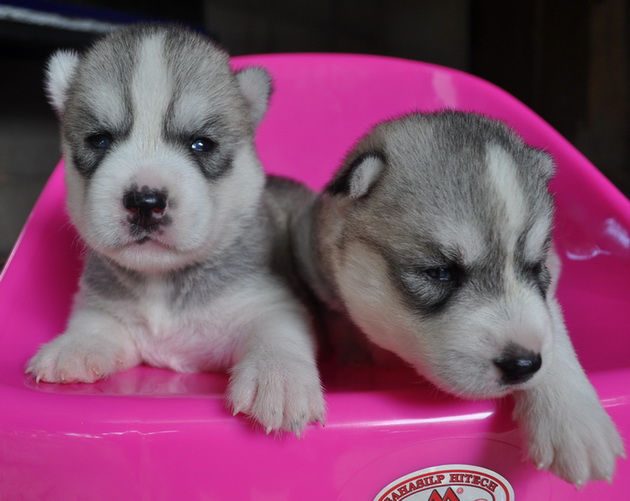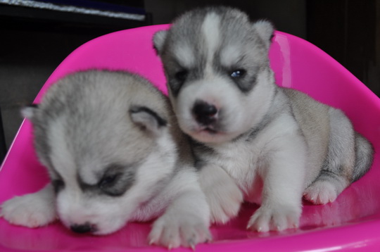 เปิดจองน้องหมาไซบีเรียน เพศเมีย สองตัว สีขาวเทา โครงสร้างดี