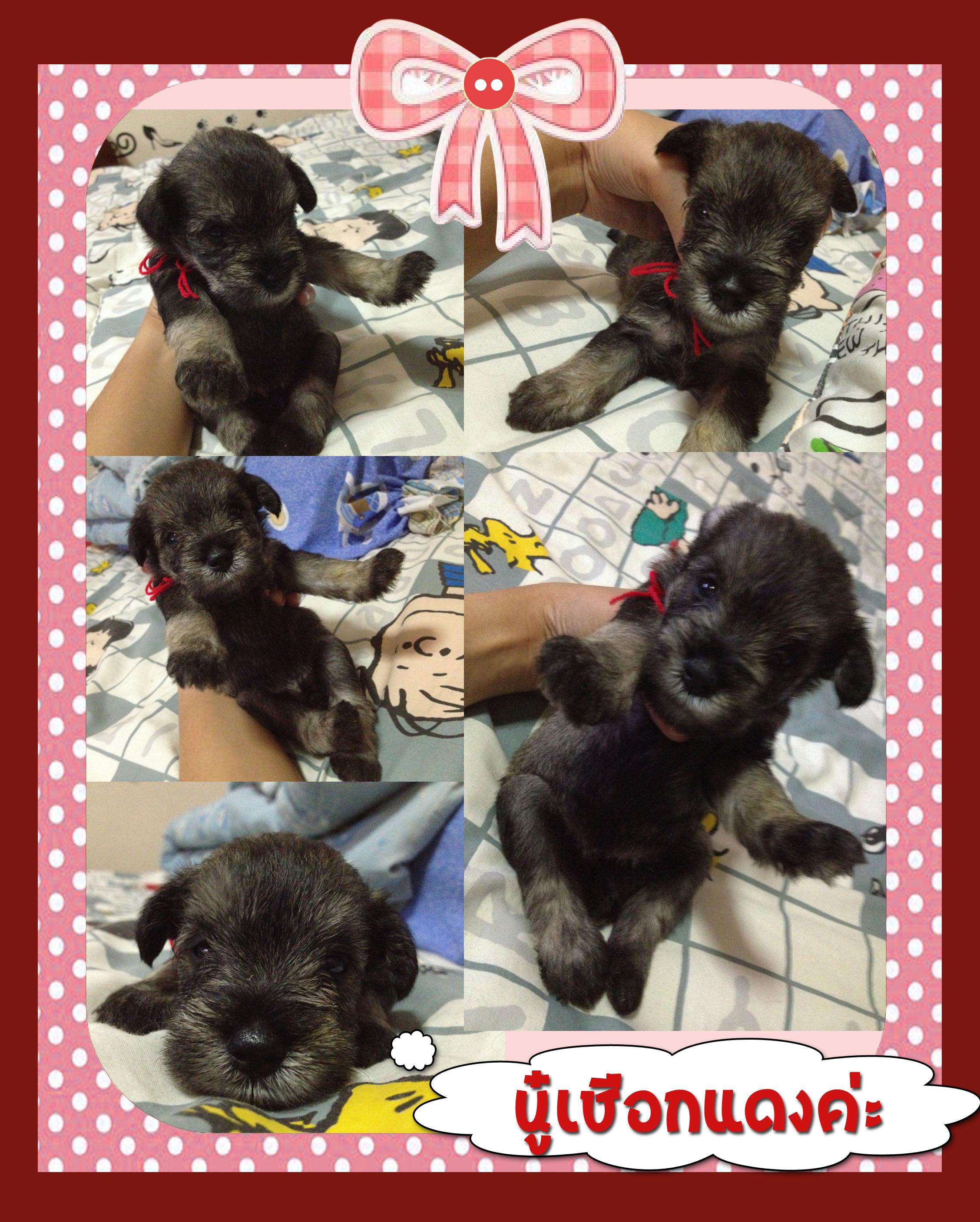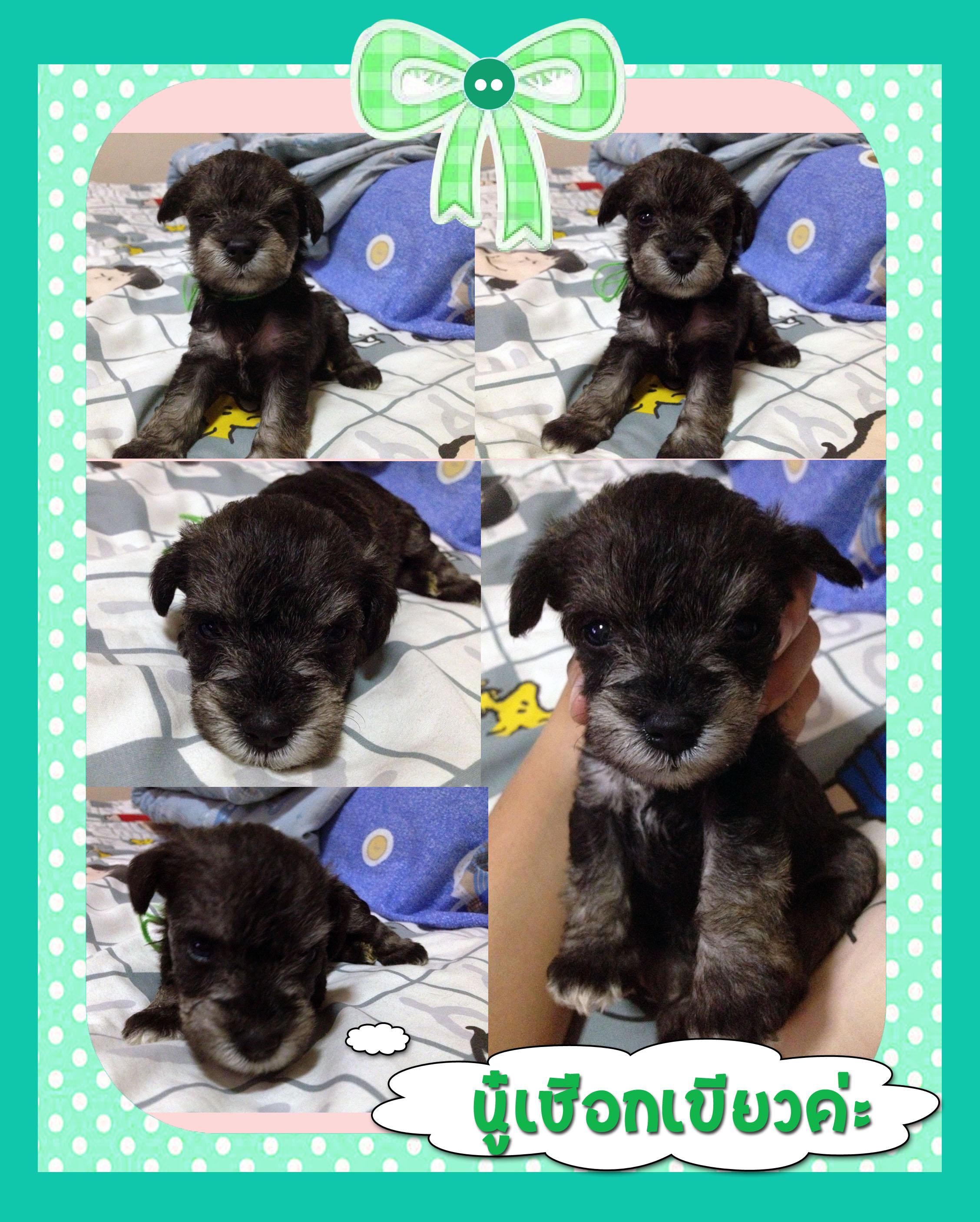 ชเนาเซอร์พันธุ์แท้ เลี้ยงเองที่บ้านค่ะ ซื้อมาจากฟาร์มเชียงใหม่ชเนาเซอร์ คอกนี้มี7ตัว ผู้2 เมีย5 เป็นสี black silver