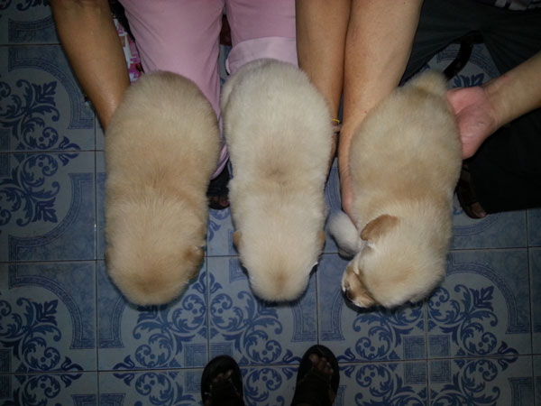 ลูกโกลเด้นสวยๆ(ผู้และเมีย) เกรด A ชุดที่ 40 จากศูนย์รวมสุนัขบ้าน กะโหลกโต กระบอกปากใหญ่และสั้น อ้วนจ้ำม่ำสมบูรณ์ เนื้อแน่นตัน สีสวย ฉลาด น่ารัก ร่าเริง แข็งแรง เลี้ยงง่าย ถ่ายพยาธิให้เรียบร้อยแล้ว สนนราคาที่ 5,500 B. เท่านั้นครับ สนใจสอบถามรายละเอียดได้ที่ Tel.085-074-0726 มารับเองได้ที่ ถ.รามอินทรา เขตบางเขน กรุงเทพฯ และมีบริการจัดส่งทั่วประเทศ (กันย์เจ้าเก่าครับ) <คลิ๊กที่รูปภาพเพื่อดูรูปขยายใหญ่ครับ>