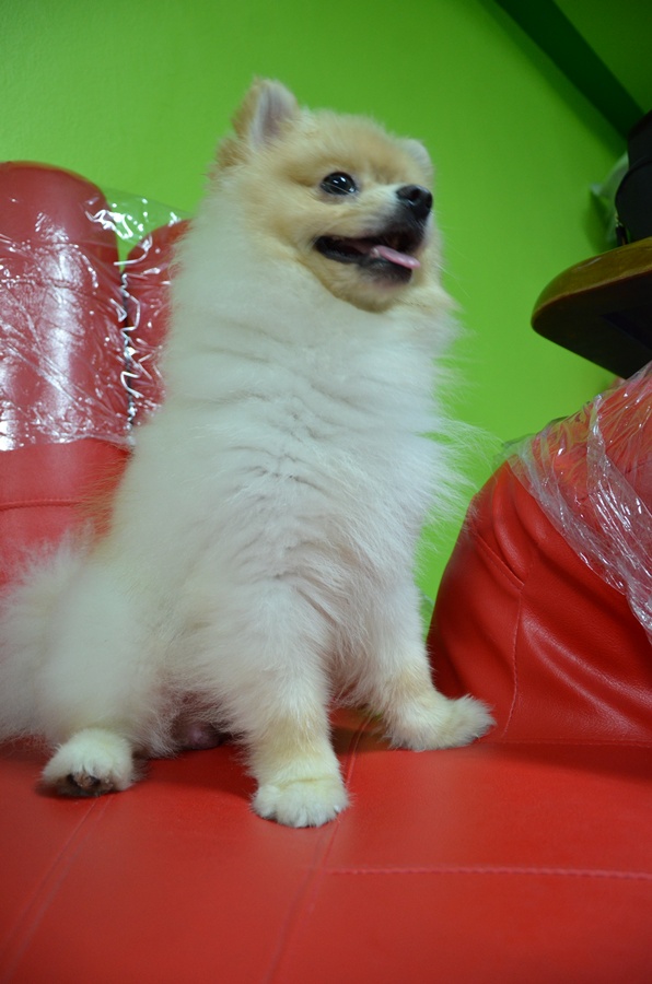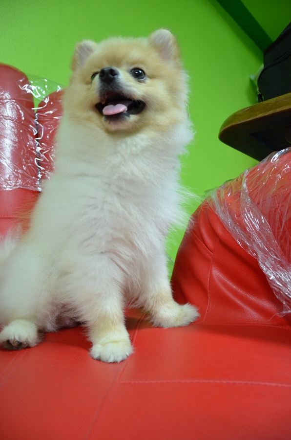 สุนัขปอม เพศผู้ (อายุ 1 ปี) ขนสองชั้น สีครีม