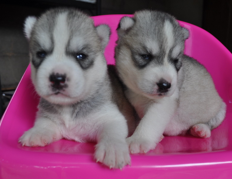 น้องหมาไซบีเรียน เพศเมีย สีขาวเทา 2 ตัว ตาฟ้าคู่ ฮักกี้แท้