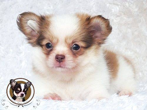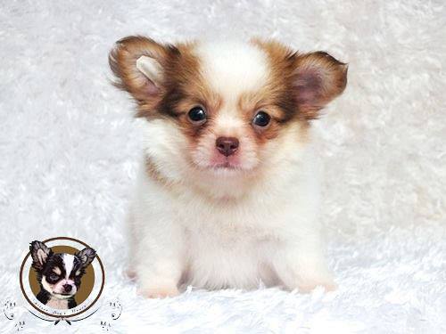 Cartoon Dog's House : ชิวาวาเพศผู้ ขนยาวสีแฟนซีขาวน้ำตาล อ้วนๆ ตันๆ