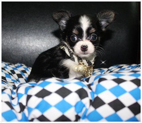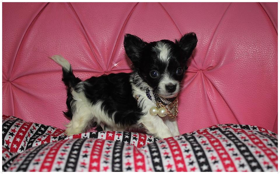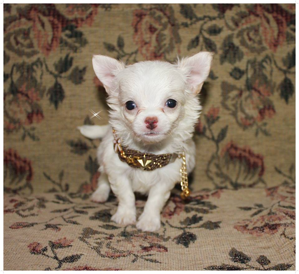 ชิวาวา ขนยาว สีขาว (สีไฮโซ) หัวโหนก ตากลมโต ตัวเล็ก กินเก่ง แข็งแรง