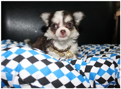 ชิวาวา ขนยาว สีขาว (สีไฮโซ) หัวโหนก ตากลมโต ตัวเล็ก กินเก่ง แข็