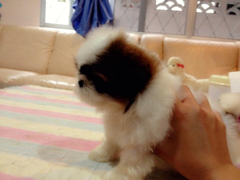 ชิสุ(น้องเซญ่า)สีขาว-น้ำตาล ไซด์ทอย เพศเมีย ขาสั้นเตี้ย ตัวสั้น กระโหลกใหญ่ โคลงสร้างเยี่ยม ขนสวยแน่นปึกมากๆ ทานเก่ง ขี้เล่น น่ารัก แข็งแรง บ้าพลังมาก เกิด 18 มิ.ย.56 ติดคนมาก ขี้อ้อน ถ่ายพยาธิ+วัคซีน1เข็มคะ