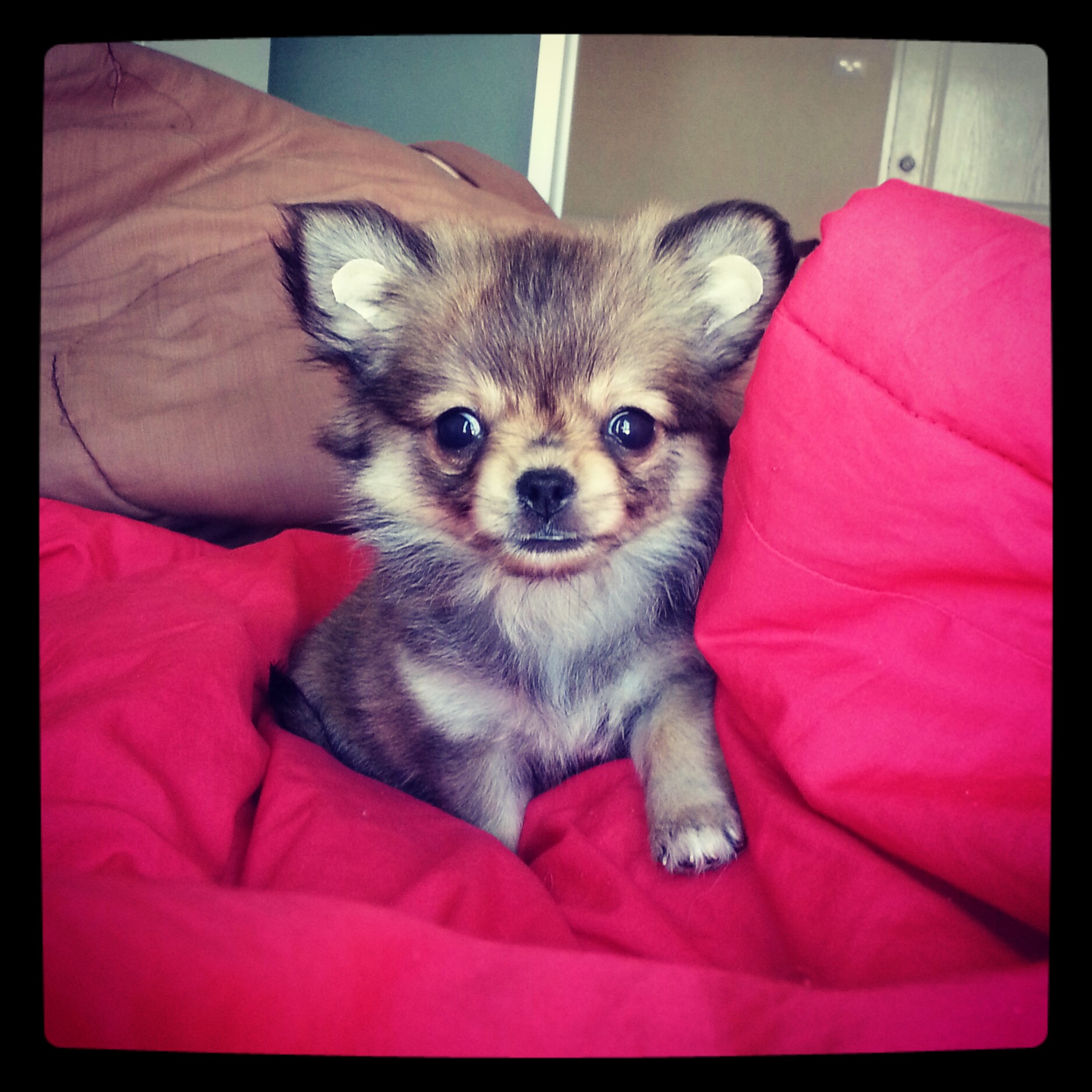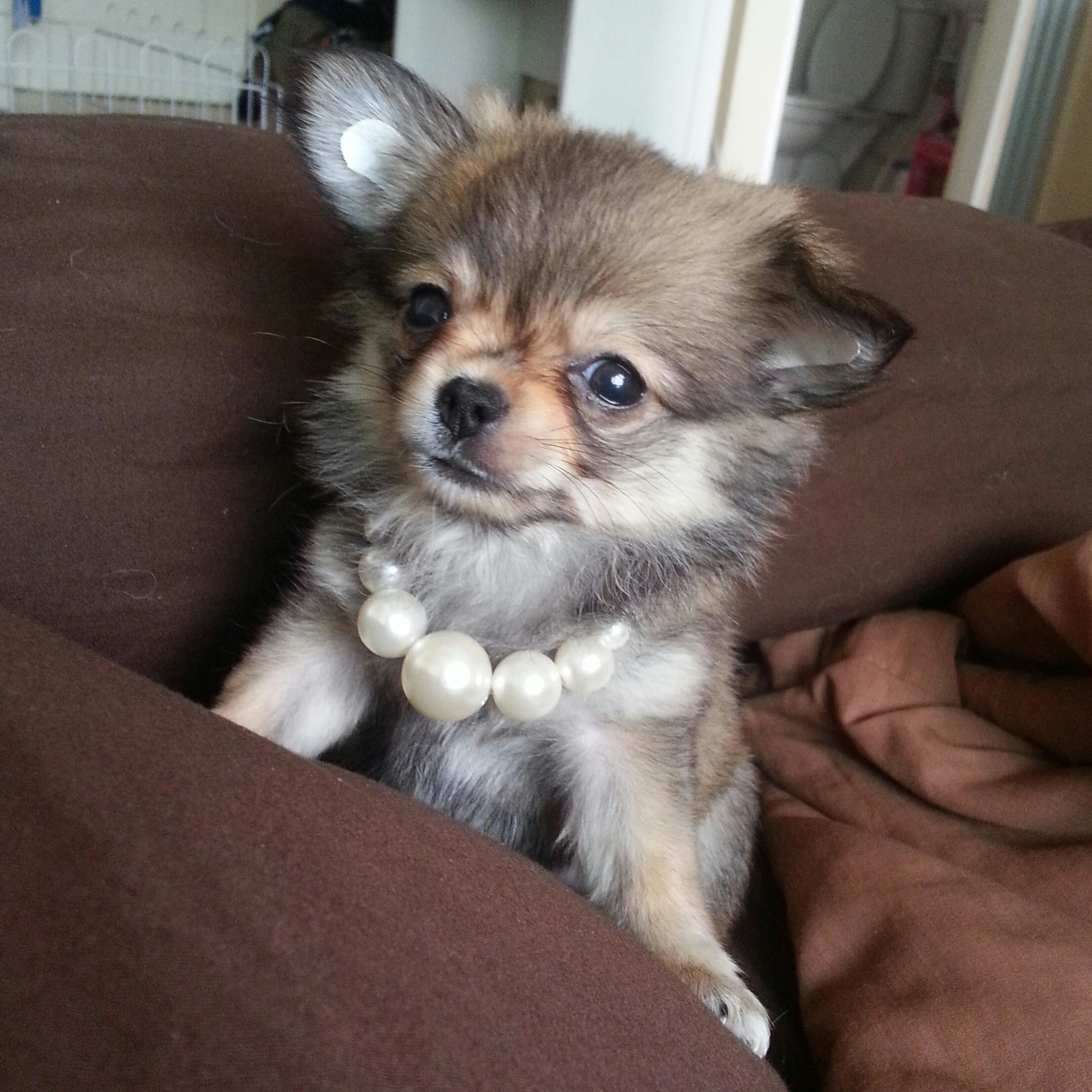 ชิวาวาเพศผู้ ขนยาวสีน้ำตาลทอง ขนแน่นฟู