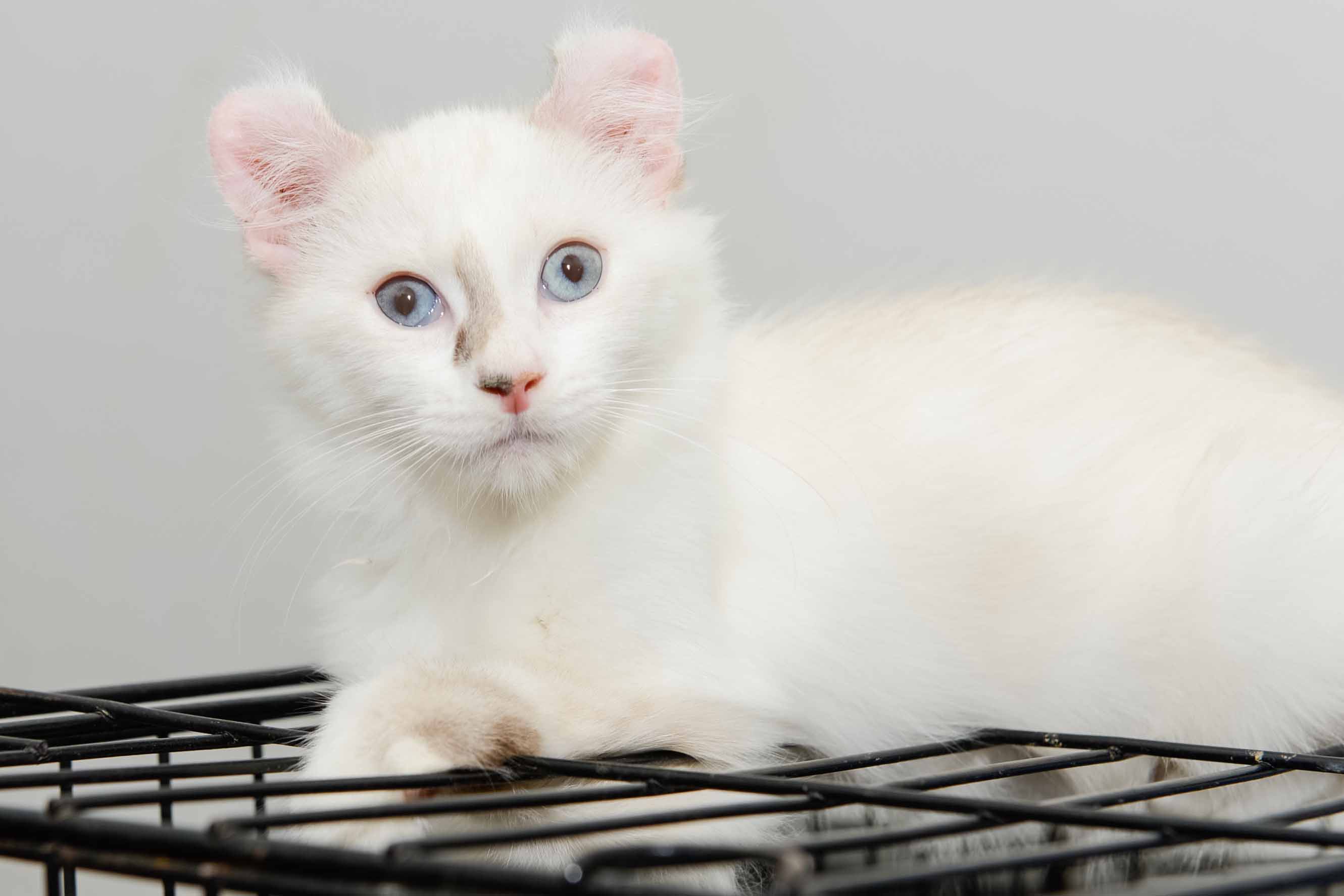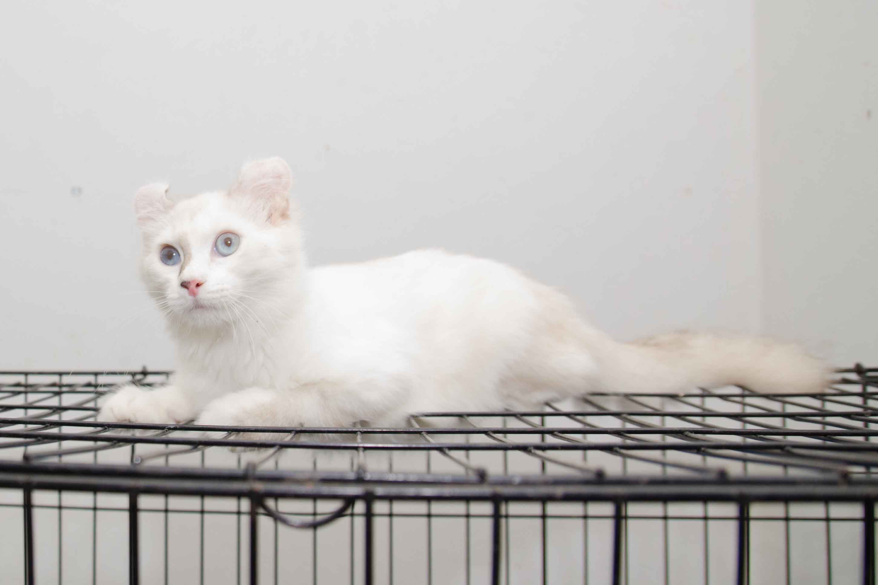 แมวผิวสีชมพู นัยตาสีแดง ขนสีขาว แมวเผือกที่มีลักษณะให้โชคลาภ