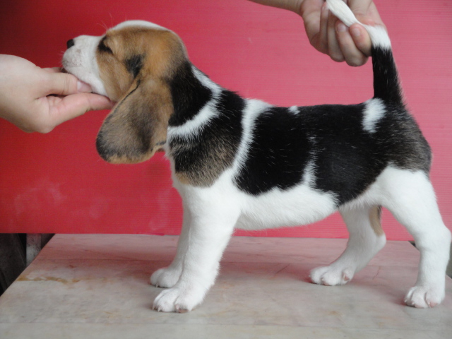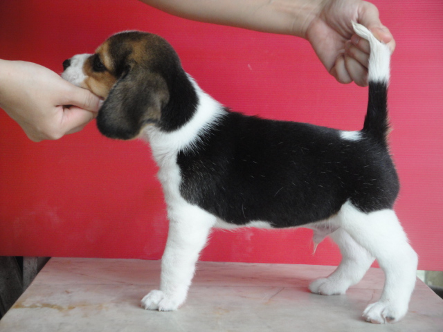 ขายสุนัขบีเกิ้ลสุขภาพแข็งแรงโครงสร้างสวยอ้วนล่ำ สายเลือดแชมป์ มีหลายคอก อายุเดือนครึ่ง ไซส์ 13 นิ้ว ทำวัคซีน ถ่ายพยาธิแล้ว พ่อแม่มีใบเพด พร้อมย้ายบ้าน