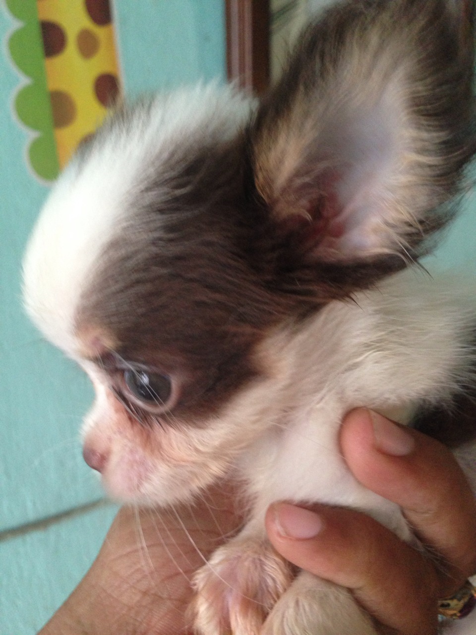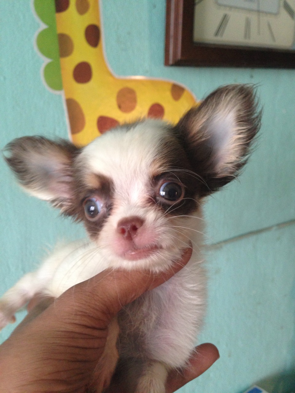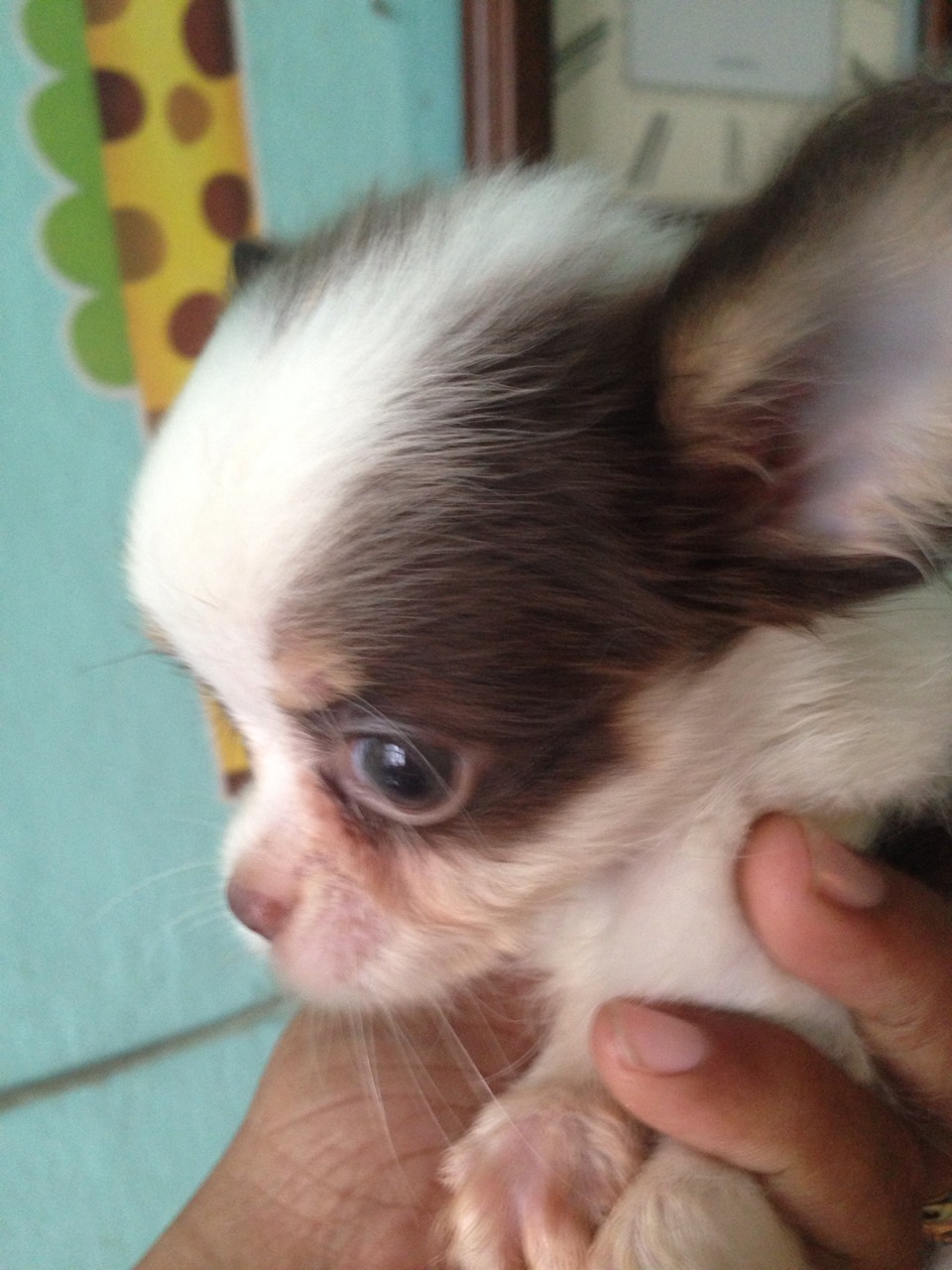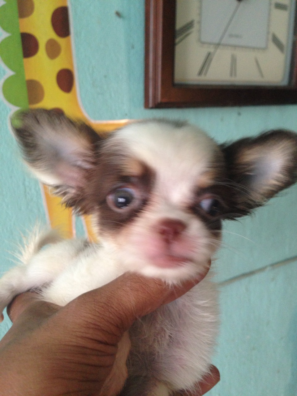 น้องข้าวหอม ชิวาวาขนยาว ไซส์จิ๋ว เพศเมีย สีขาว-ช็อค พร้อมย้ายบ้านค่ะ