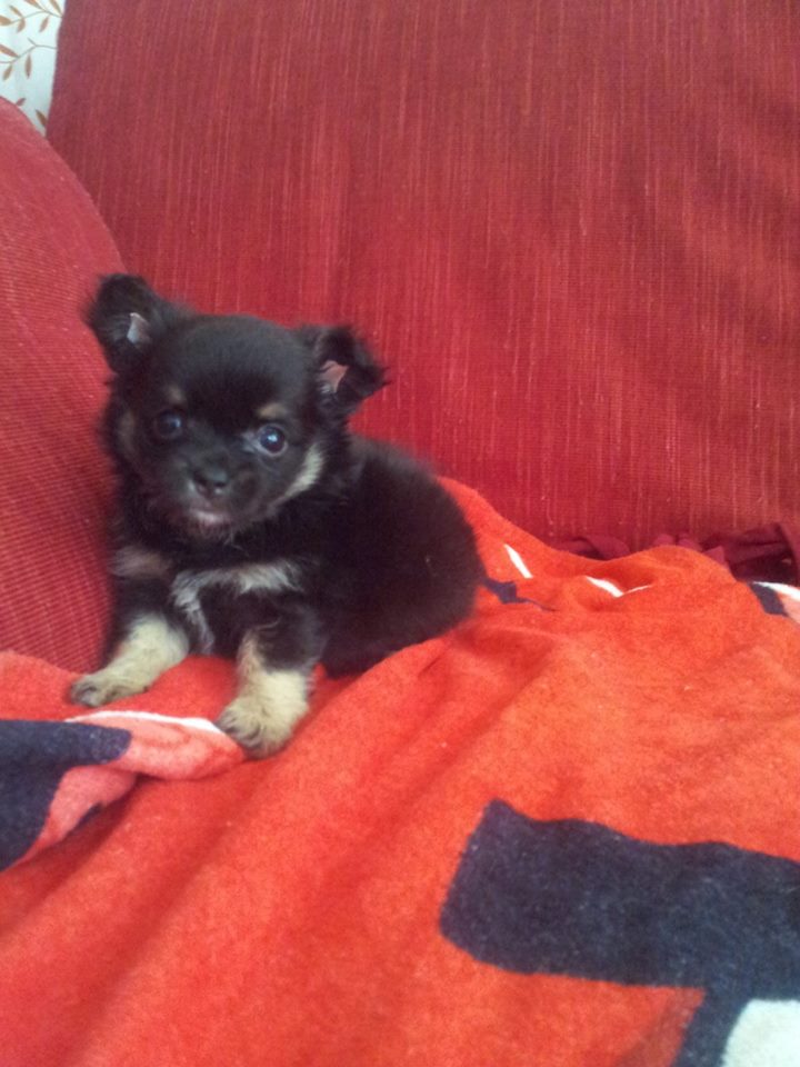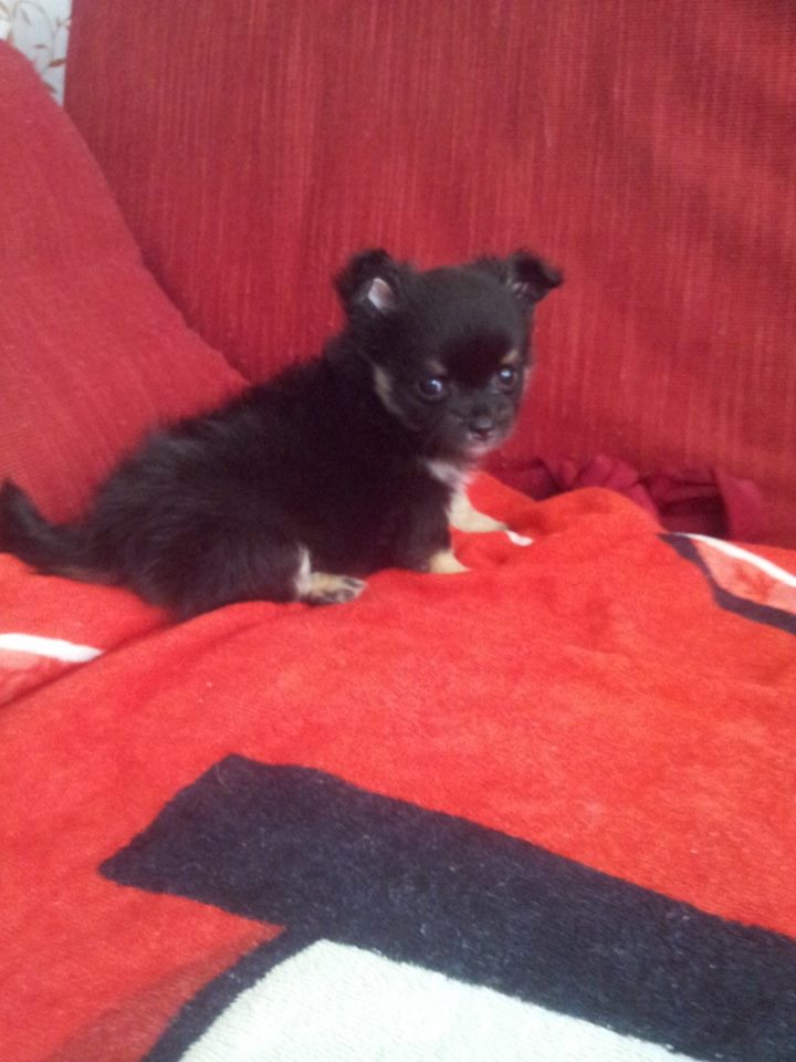 ชิวาวาขนยาว ไซด์เล็ก สีแบล็คแทน ขนแน่น เกรดสวย หัวโต หน้าสั้น เพศผู้ อายุ55วัน วัคซีน+ถ่ายพยาธิแล้ว ร่าเริง แข็งแรง สนใจโทร.088-2004800ตลอด24ชม.ค่ะ