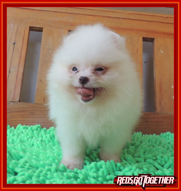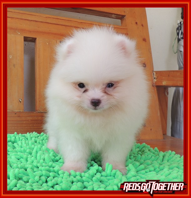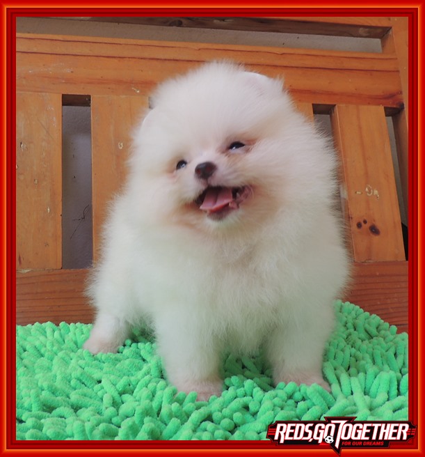 น้องปอม เพศผู้ ไซด์เล็กสั้นเตี้ย หน้าสั้น สีขาว ขนหนาแน่น รูปร่างฟอร์มสวย เล็กจิ๋ว แข็งแรงสมบูรณ์