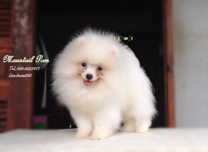 แบ่งขายปอมเพศ ผู้ สีขาว อายุ 4 เดือน พร้อมใบเพดดีกรี สอบถามลายละเอียด0805023917-0899972719 Line:benae555