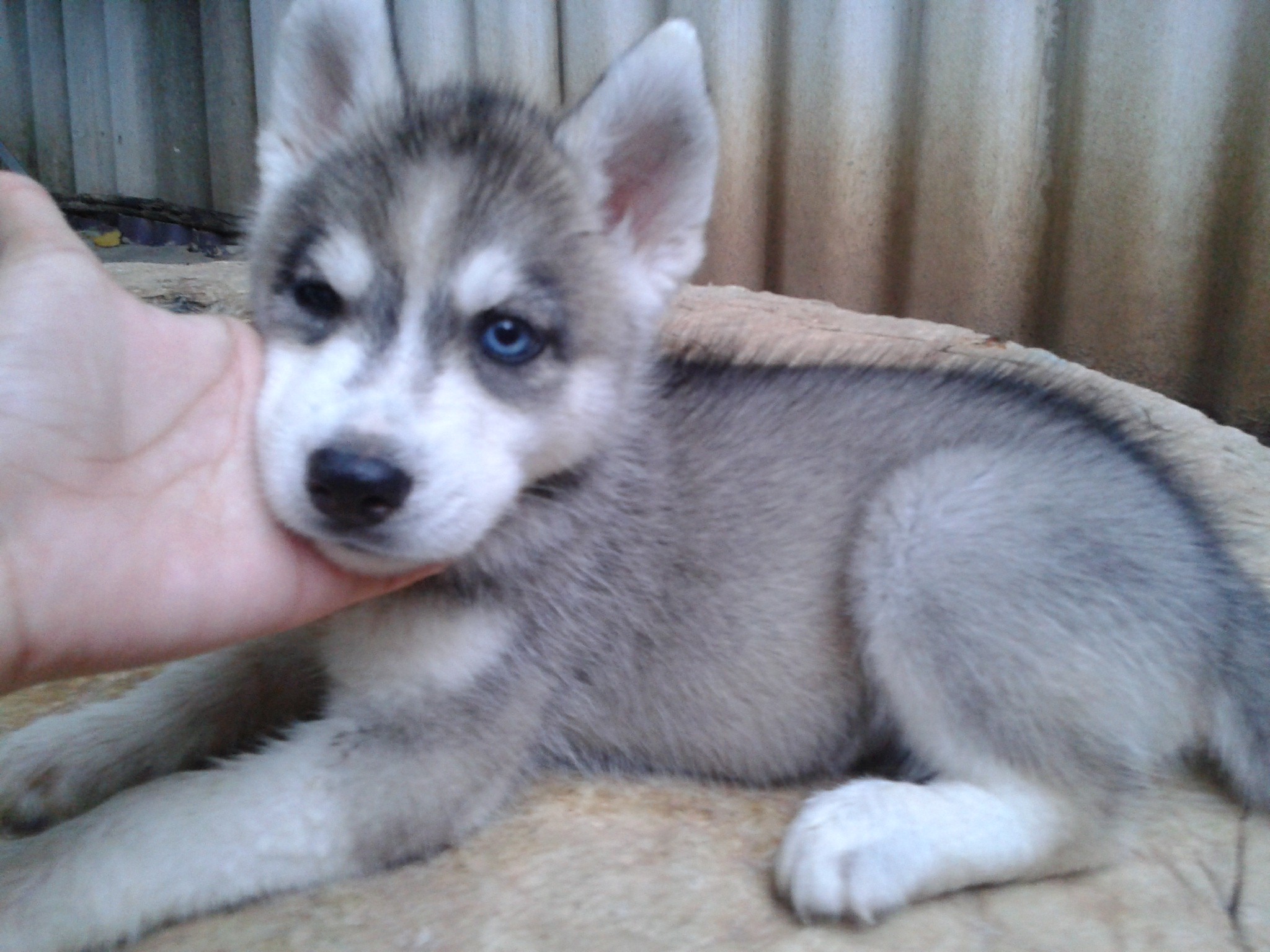 ไซบีเรียนสีขาวเทา เพศผู้ ตาฟ้าข้างดำข้างจร๊ะ