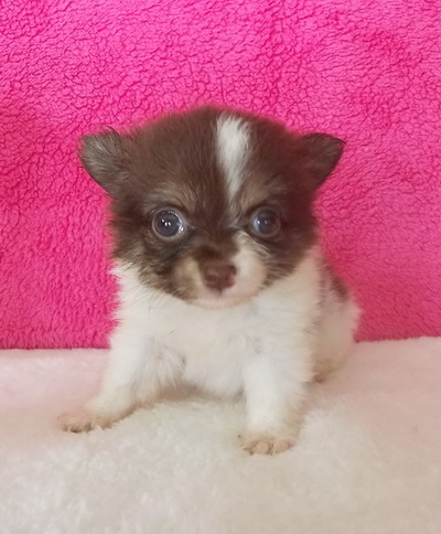 น้อง"เคนจิ" ชิวาวาขนยาว เพศผู้ สีขาว-ช็อค ไซด์เล็ก ขนฟูๆ