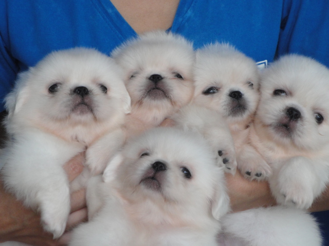 ลูกสุนัขปักกิ่ง สีขาว(พ่อแม่ขาว) หน้าใหญ่ ขาใหญ่ ขนแน่น อ้วนเตี้ย สายพันธ์แท้มีทั้งผู้และเมียทำวัคซีน+ถ่ายพยาธิแล้ว พร้อมย้ายบ้าน