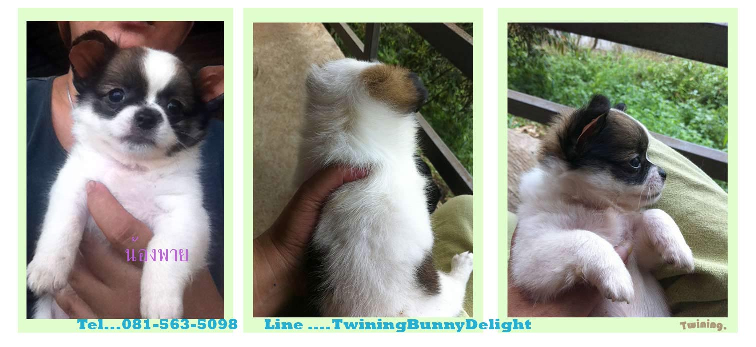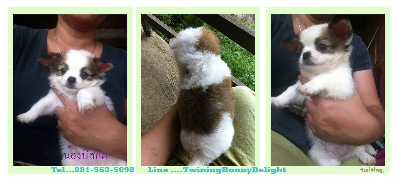 เด็กชายชิวาวา ขนยาว หัวกลมๆ สีแฟนซีน้ำตาล ครอกเดียวกัน
