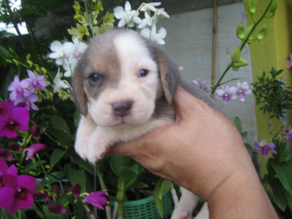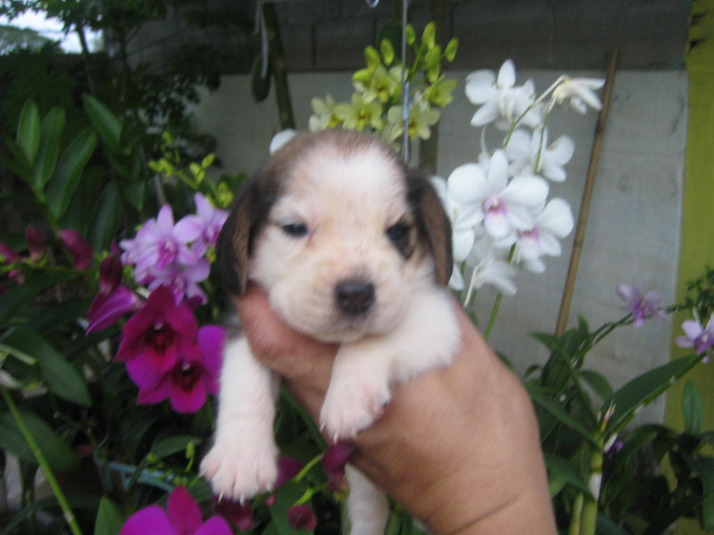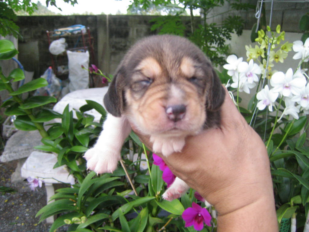 ลูกบีเกิ้ลอายุ 20-25 วัน สามสี เพศเมียทั้งหมด มีให้เลือก 4 ตัว มีใบเพดดีกรี