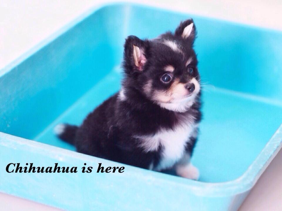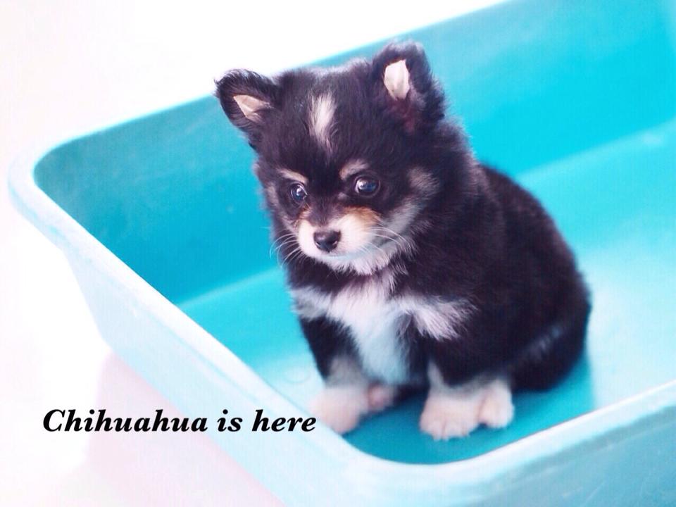 น้อง Husky ชิวาวา ขนยาว แบล็คแทน เพศผู้ มาร์คกิ้ง แก้ม คิ้วถุงเท้า หน้าอก ปลายหาง