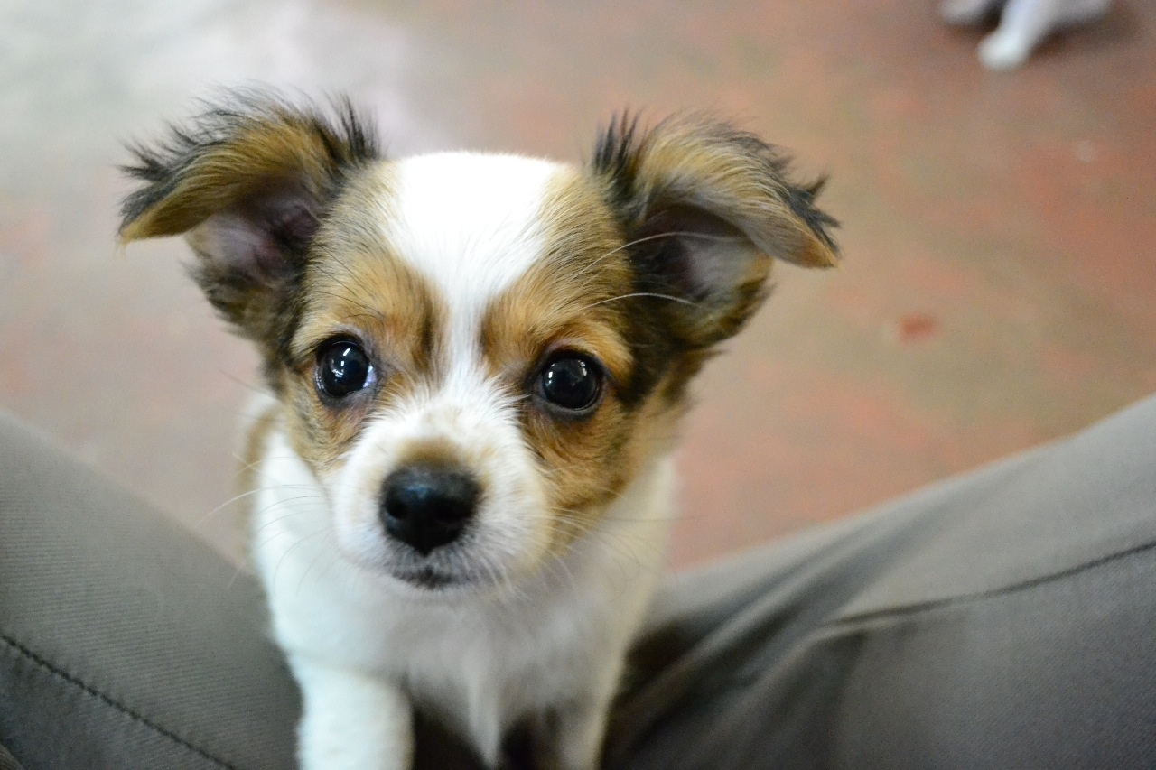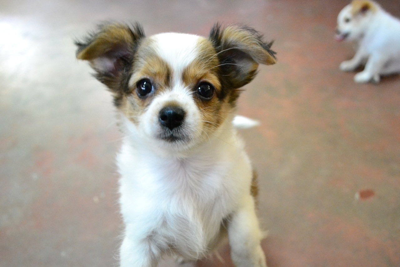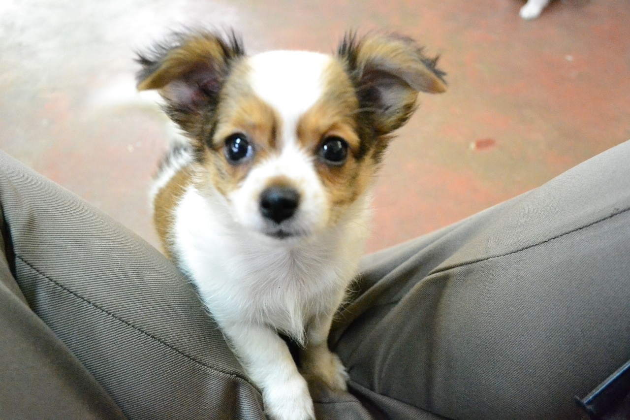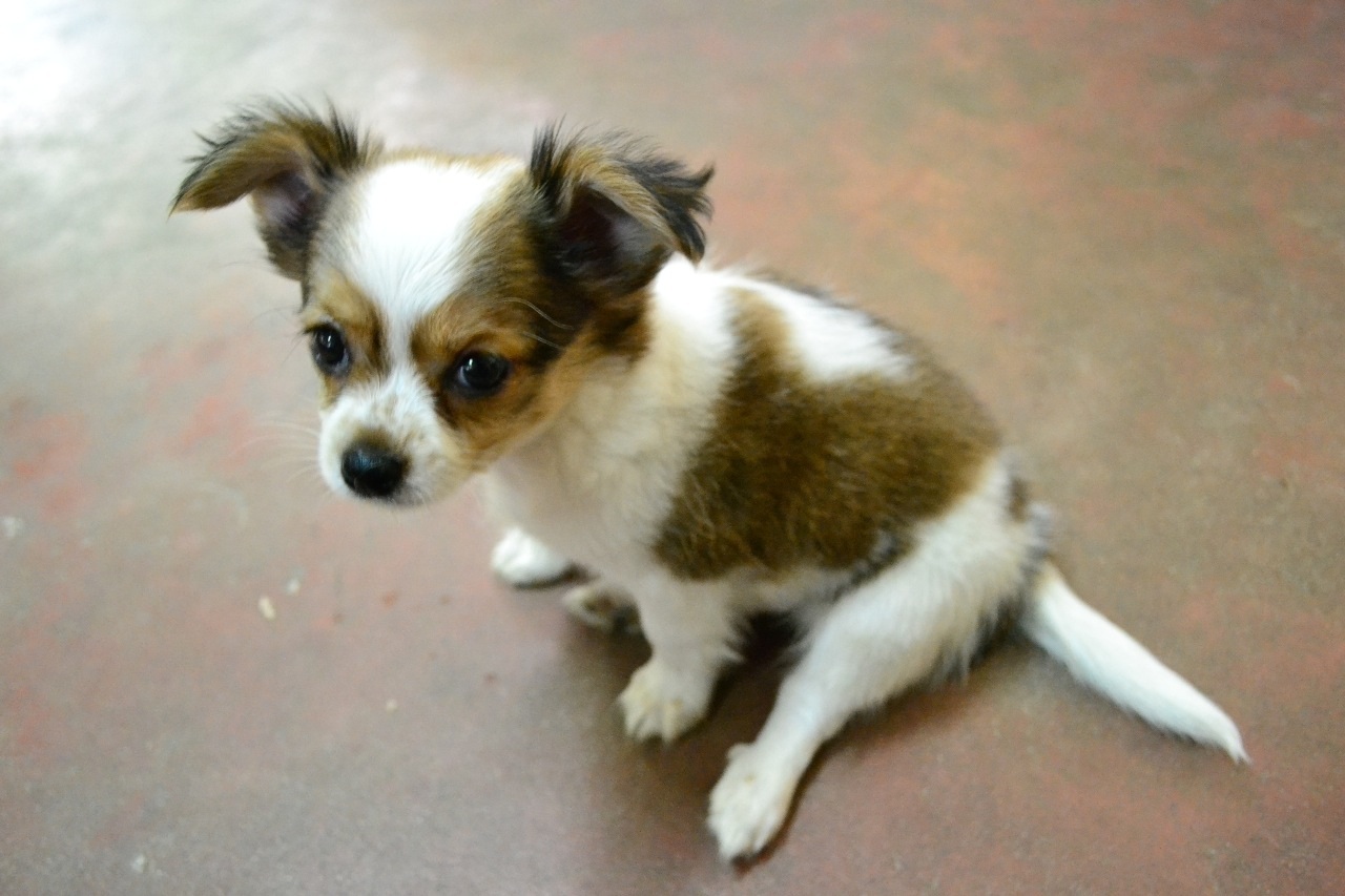 ชิวาวาขนยาว. สีน้ำตาล ขาว. ลายวัว