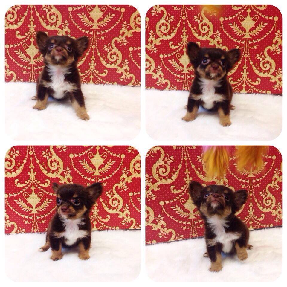 ชิวาวาขนยาว เพศผู้ สีช็อคแทน มาร์คกิ้งครบ