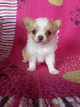 ขายชิวาว่า เพศชาย ขนยาวสีขาวครีม ฟอร์มดี ตัวเตี้ย หัวโตหน้าสั้น ขนยาวฟูแน่น ขี้เล่น ร่าเริง เกิดวันที่ 31 สิหาคม 56 สนใจโทรสอบถามได้นะคะ 081-2882586