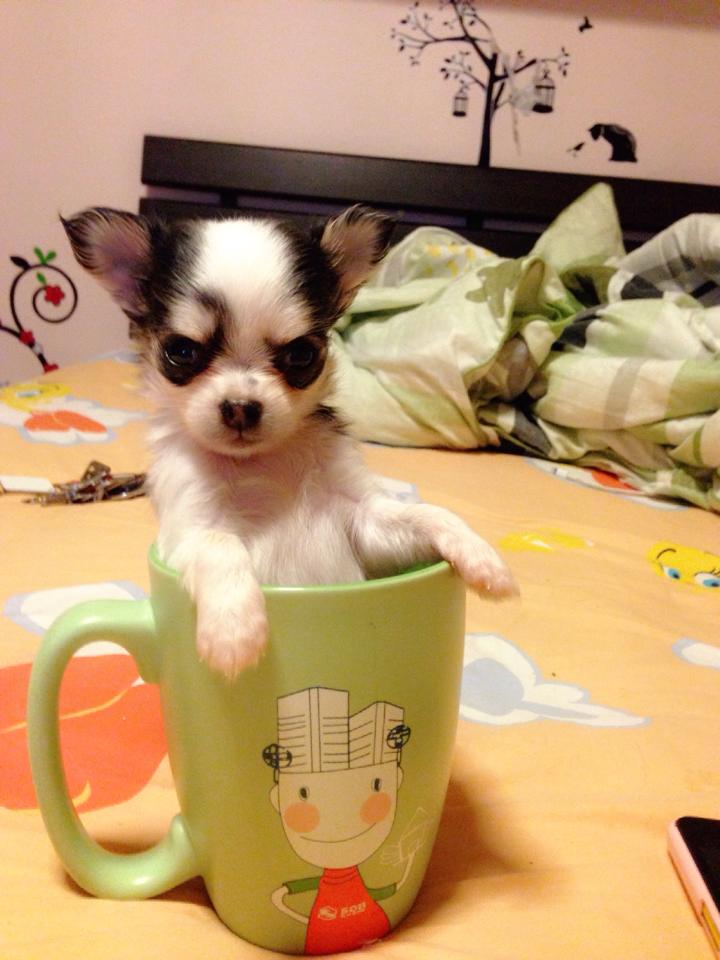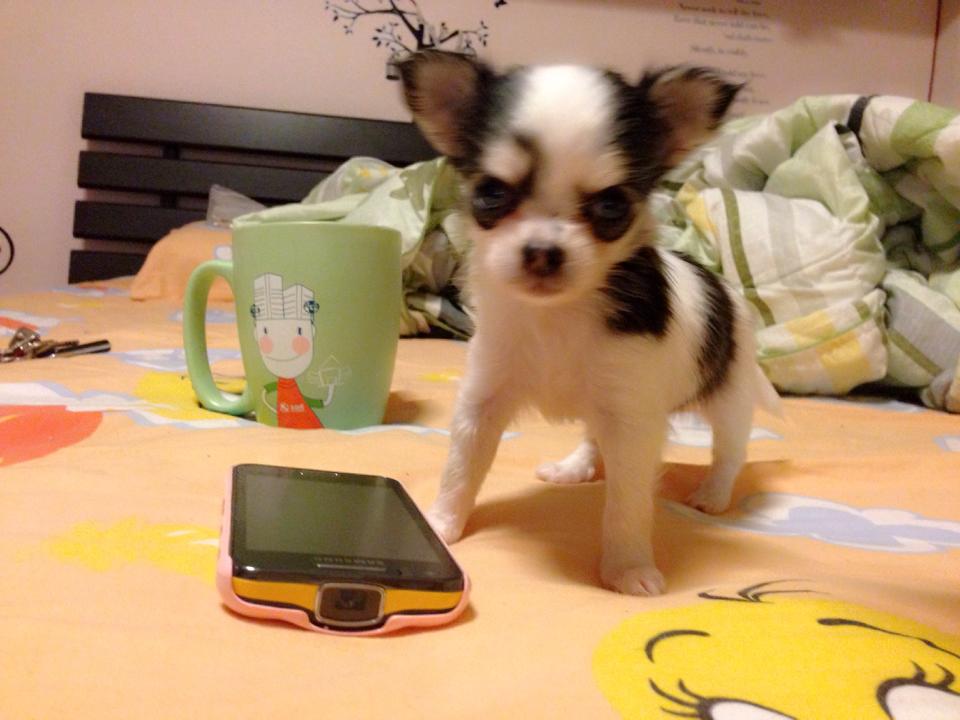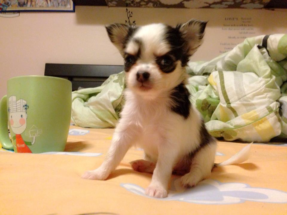 ชิวาวาขนยาว(น้องเคฟล่า)สายใต้หวัน สีขาว-ดำลายลูกวัว ไซด์เล็ก