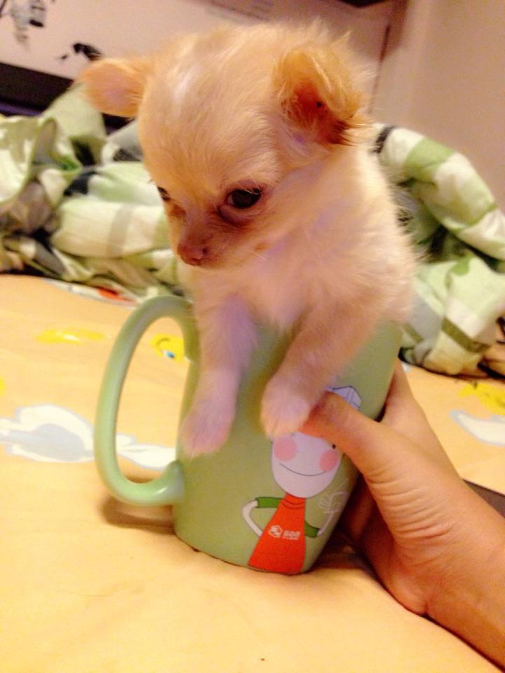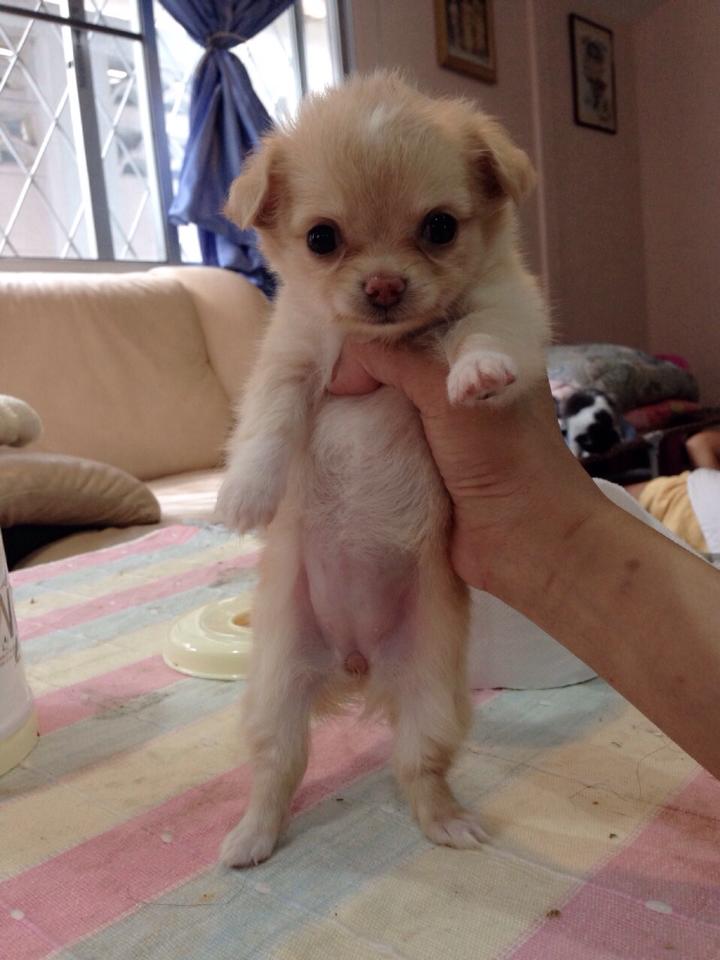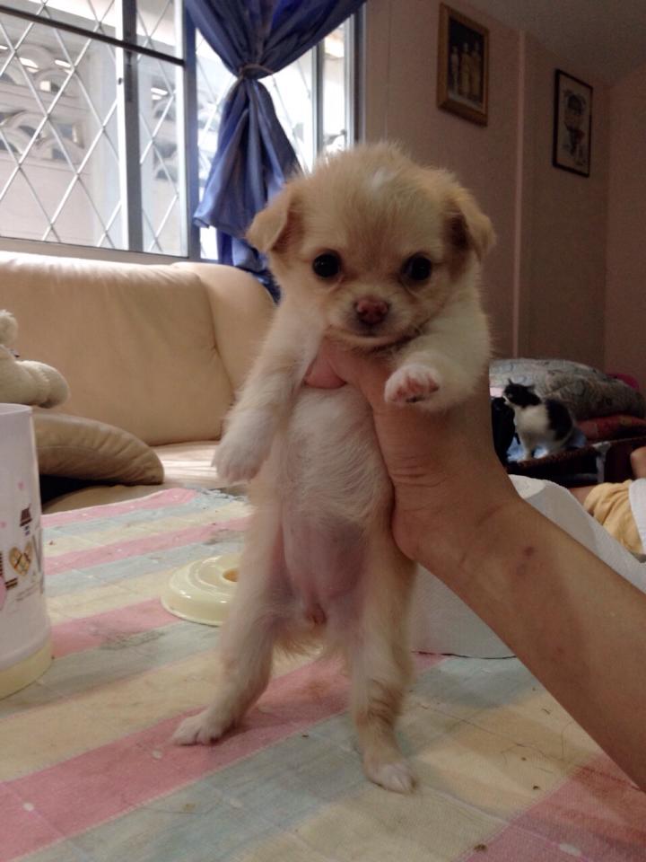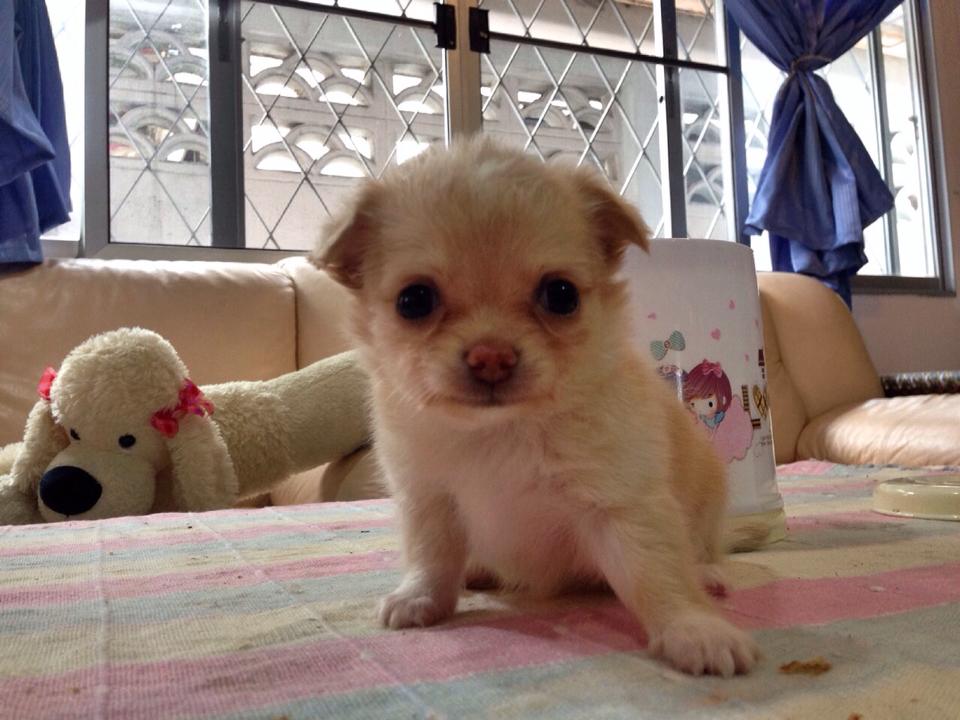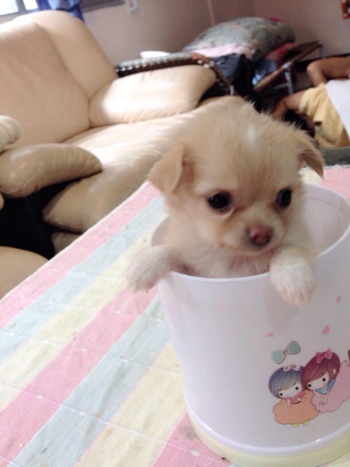 ชิวาวาขนยาว(น้องแคลอน)สายญี่ปุ่น สีครีม ไซด์ทีคัพ พร้อมใบเพด