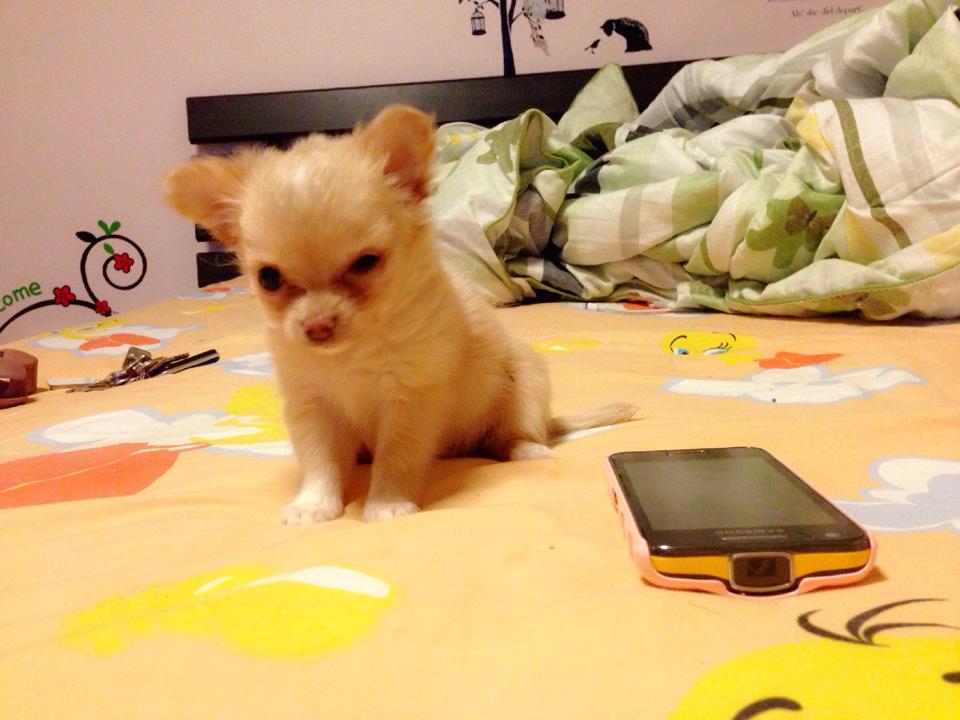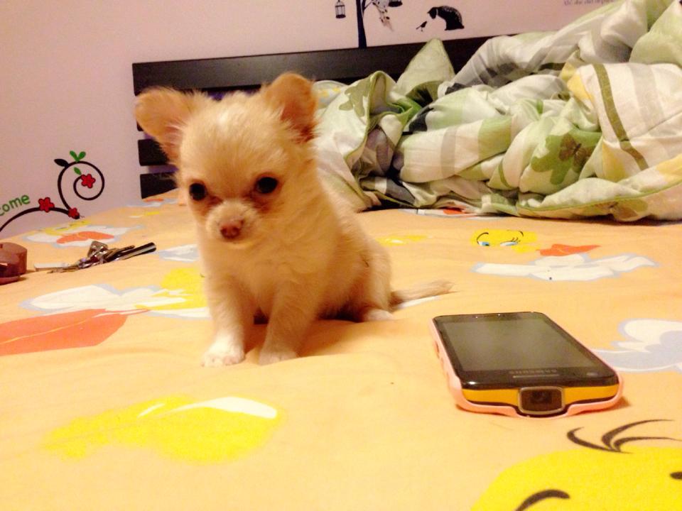 ชิวาวาขนยาว(น้องแคลอน)สายญี่ปุ่น สีครีมอ่อน ใส่ถุงเท้าครบ จมูกสีชมพู มีแต้มสีขาวกลางหน้าผาก ไซด์กึ่งทีคัพ หน้าสั้น หัวแอปเปิ้ล เพศเมีย เกิด 5 สค. 2556 พร้อมใบเพด น่ารัก ติดคน ขี้เล่น ฉลาดฝุดๆ ทานเก่ง พร้อมใบเพด ถ่ายพยาธิ+วัคซีน2เข็มแล้วคะ