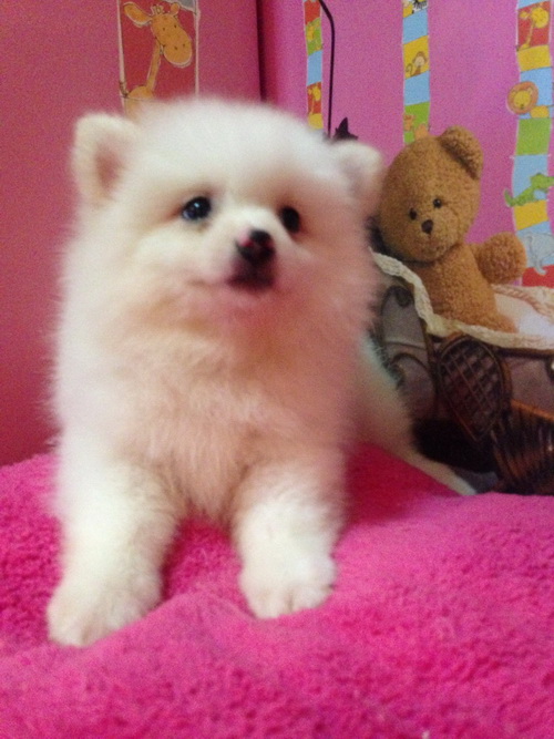 ปอม สีขาว ผู้ 1 เมีย 1 น่าขี้เล่น มีใบเพรด