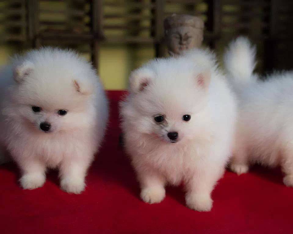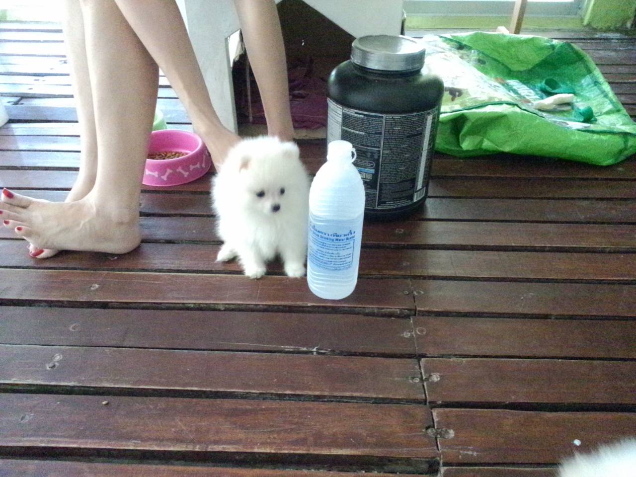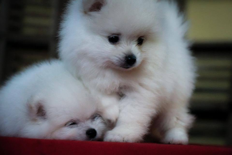 น้องปอมสีขาวจั๊วะ ขนแน่นฟูหน้าหมีๆ ถ่ายพยาธิแล้ว เพศผู้ จำนวนสองตัว รับประกันโรคลำไส้อักเสบและไข้หัดสุนัข
