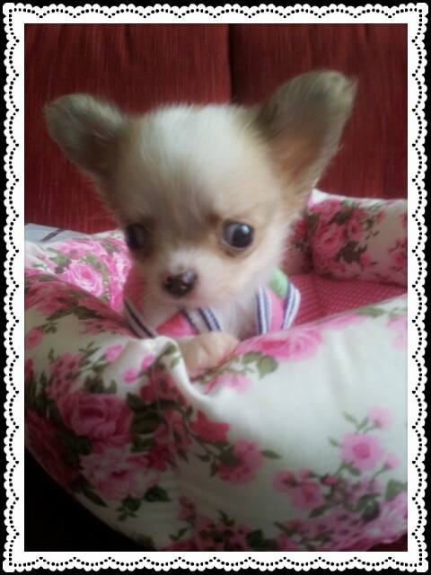 ชิวาวาขนยาว ไซด์T-cup หัวแอ๊ปเปิ้ล น่ารัก เพศเมีย สีขาวน้ำตาล อายุ2เดือน วัคซีน+ถ่ายพยาธิแล้ว ร่าเริง แข็งแรง สนใจโทร.088-2004800 ตลอด24ชม.ค่ะ
