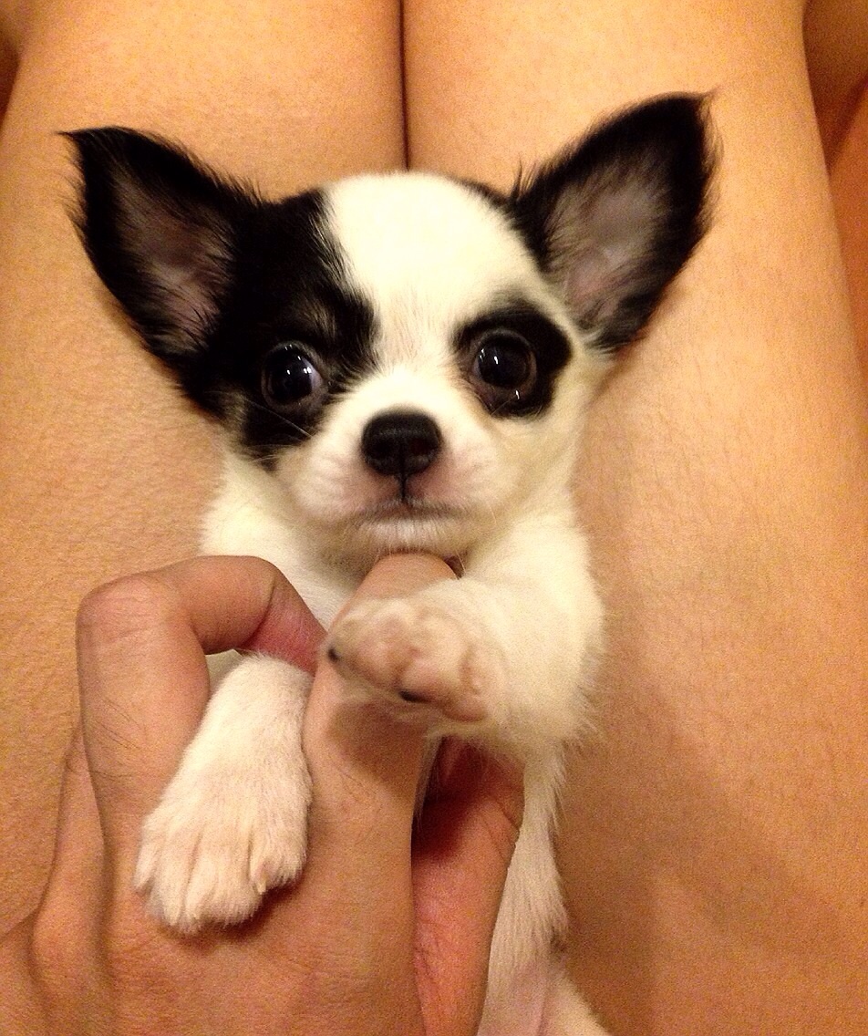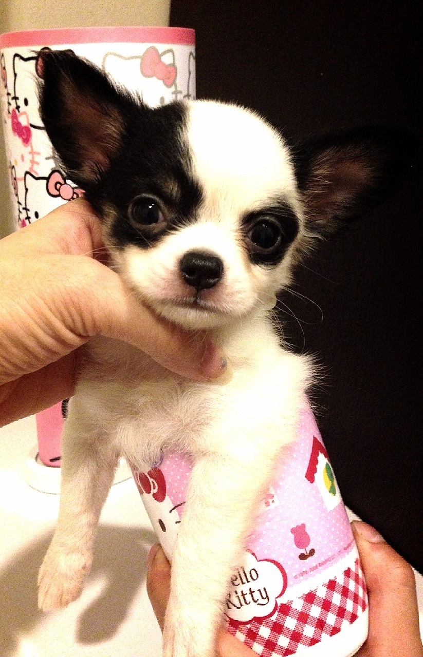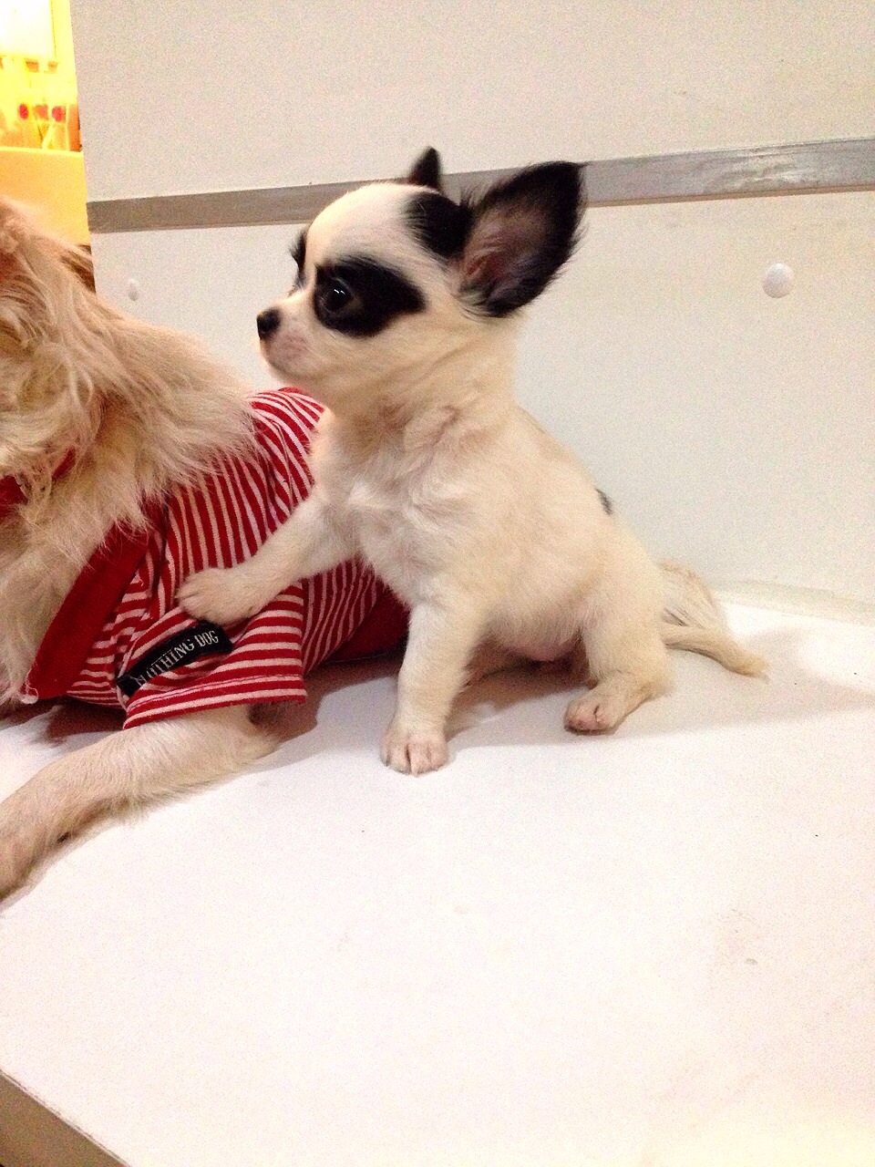 ขายชิวาวาขนยาว อายุ2เดือนครึ่ง มาร์คกิ้งแพนด้า สีขาวดำ สีตัดกัน มาร์กกิ้งชัด มีคิ้ว หูตั้ง หัวกลม หน้าสั้นและหักตรงตามหลักชิวาวาที่ดีม๊ากๆ สายพันธ์ไต้หวันแท้เป็นสุนัขบ้านเลี้ยงเอง ปลอดภัย100%