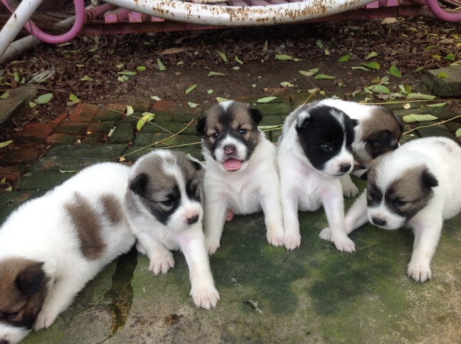 ตัวเมีย 2 ตัว ขาวดำ 1 ตัว ขาวดำน้ำตาลแต่ตัวขาวล้วน 1 ตัว